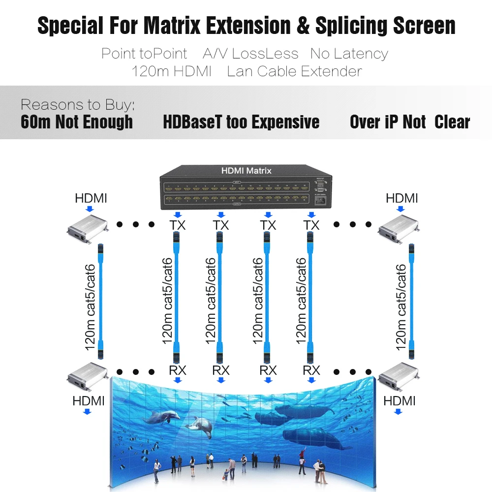 1. Extend FULL HD HDMI signal over 100 meters via singal CAT cable