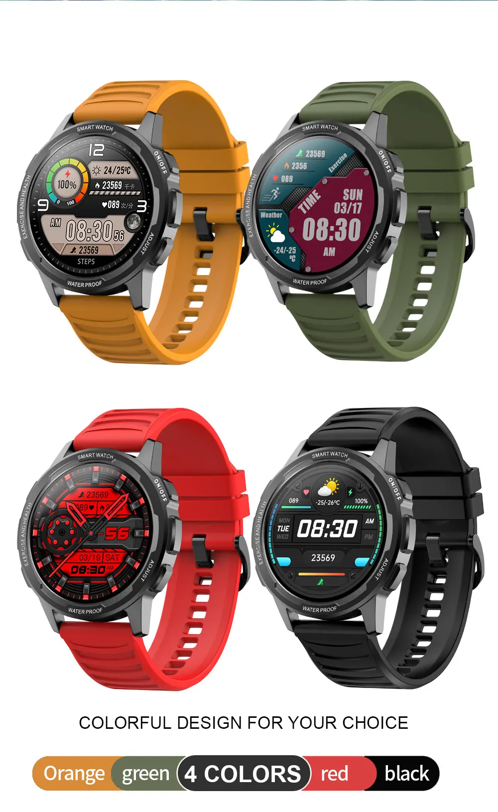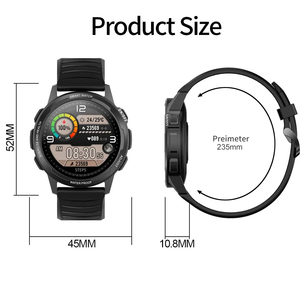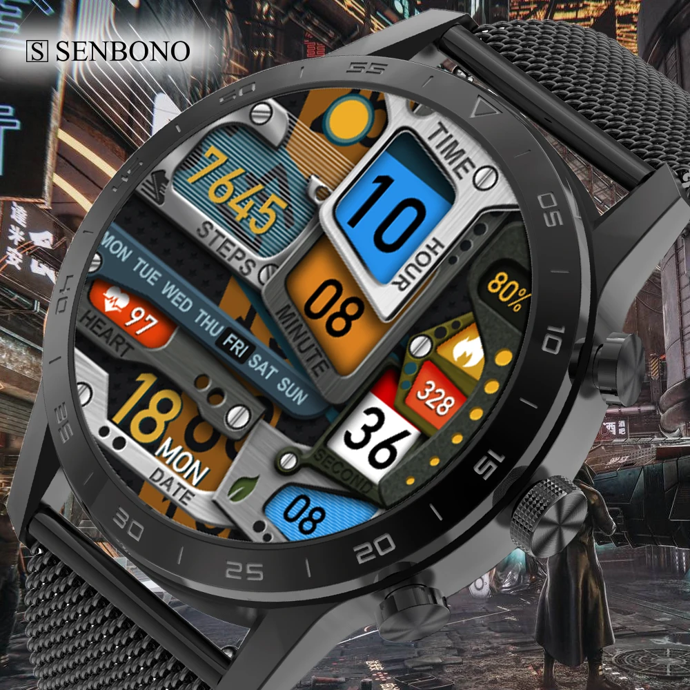 Смарт-часы SENBONO на открытом воздухе, 24 режима спорта, водонепроницаемые фитнес-трекер, термометр для мужчин и женщин, умные часы для IOS Android