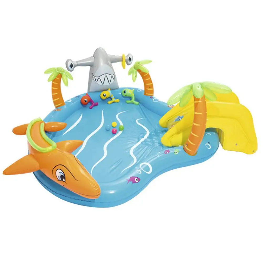 Надувной бассейн с горкой, милый мультяшный Акула, дельфин, плавательный бассейн, летняя надувная водная игрушка для детей