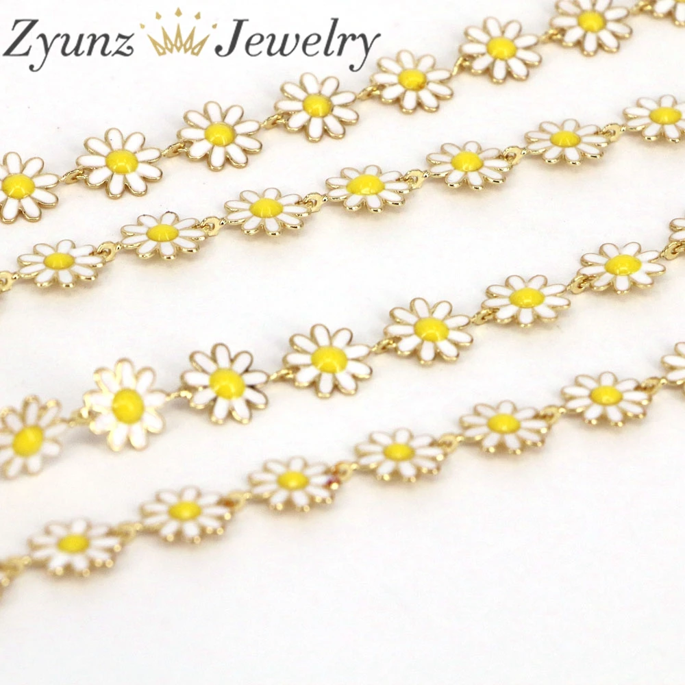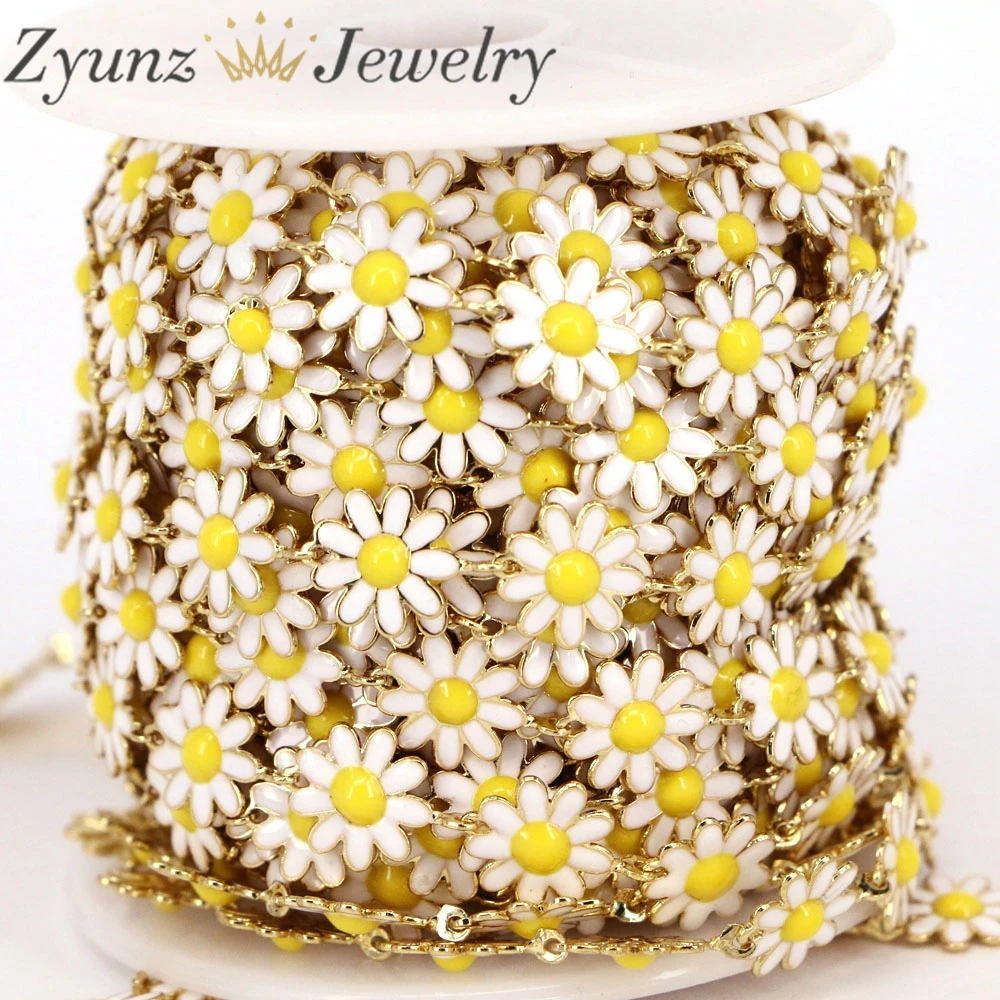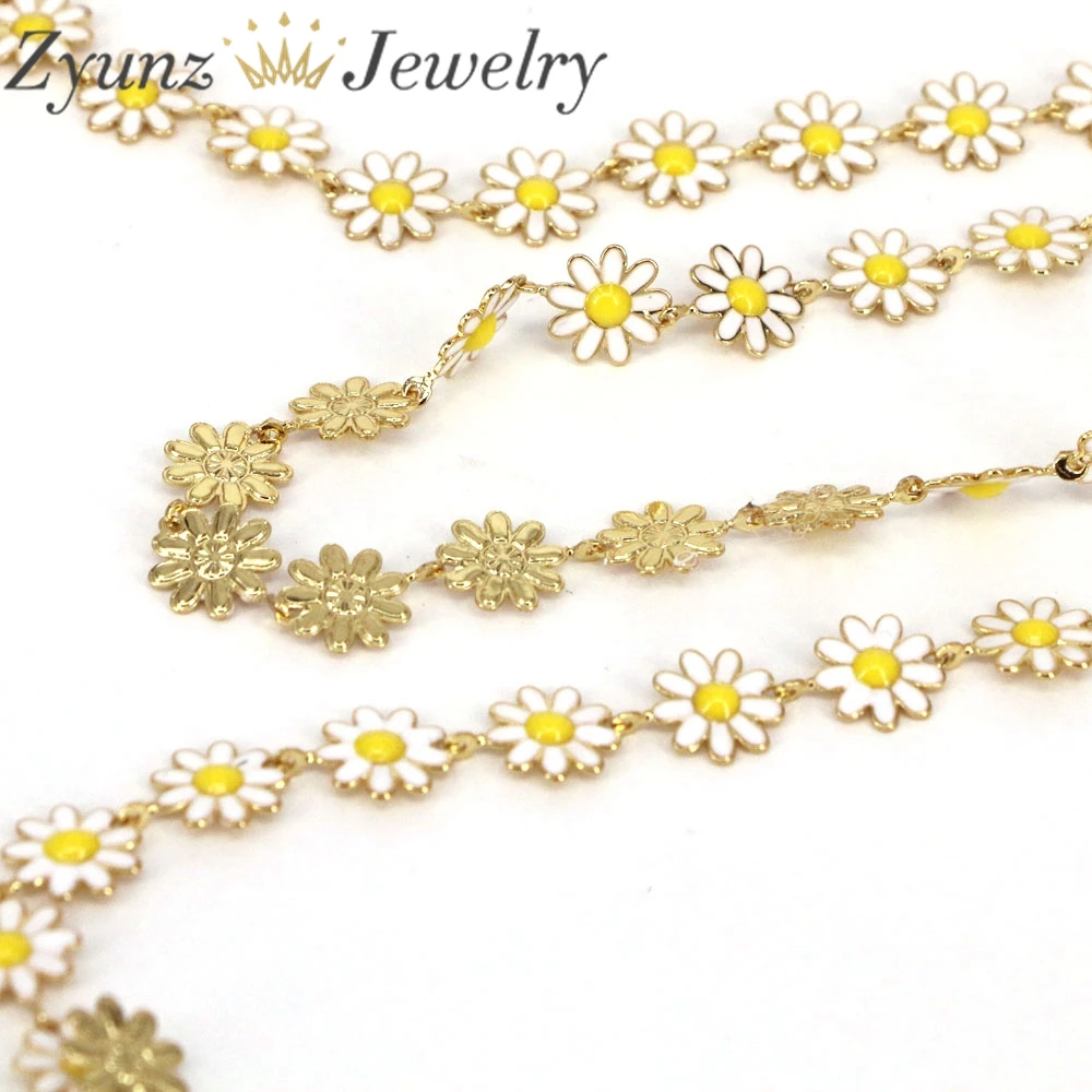 Raw, латунь, Маргаритка, Очаровательная цепочка, позолоченная, эмаль, цветок, бусы, цепи для ожерелья, браслет, серьги, сделай сам, ювелирное изделие