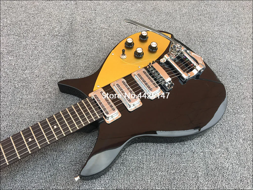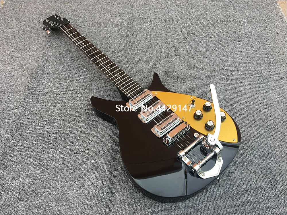 6 струн электрическая гитара Ricken 325 корпус из красного дерева гриф черный глянец отделка Bigsby Tremolo Gold Pickguard Быстрая доставка