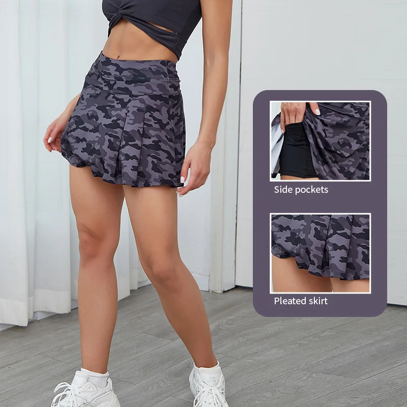 [Плиссированная теннисная юбка]Эта спортивная одежда со складками по подолу сделает вас более модной во время тренировки; Мини-юбка с эффектом подвешивания поможет вам насладиться красотой во время занятий спортом