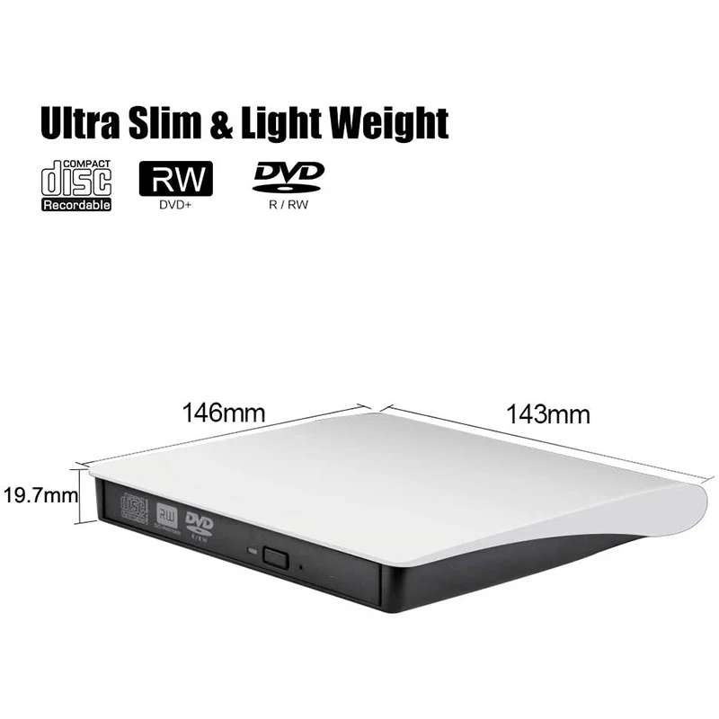 【Гениальный дизайн этот ультратонкий CD/DVD проигрыватель для ноутбуков оснащен кнопкой извлечения, так что вам не нужно беспокоиться о том, что ваш диск застревает внутри этого внешнего CD/DVD диска. Кроме того, технология медной сетки этого внешнего компонента, вы можете быть уверены в стабильной передаче данных.