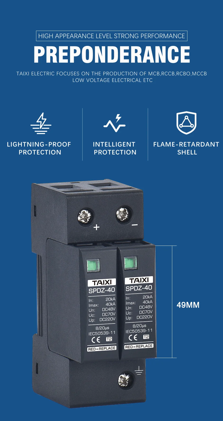2. Защита от перенапряжения постоянного тока используется только для различных систем питания постоянного тока, таких как распределительные панели постоянного тока, оборудование источника питания постоянного тока, распределительные коробки постоянного тока, шкафы электронной системы информации, И выходные терминалы оборудования вторичного источника питания.