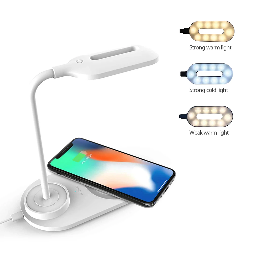 Светодиодный настольный светильник с беспроводным зарядным устройством, 3 уровня яркости, ухаживающие за глазами настольные лампы, беспроводной зарядный Настольный светильник Точка пули:
