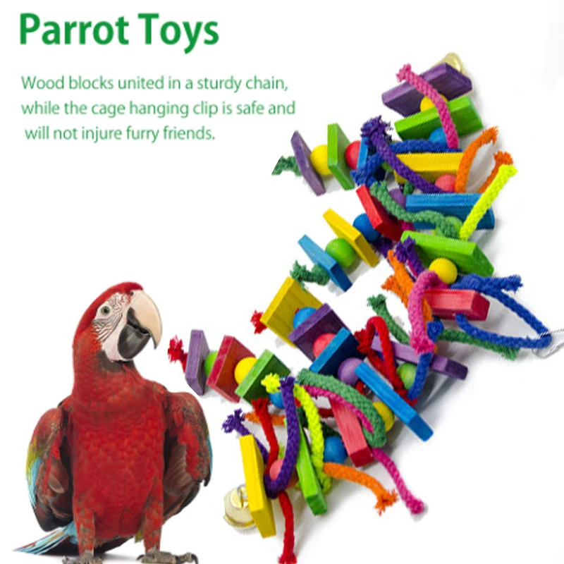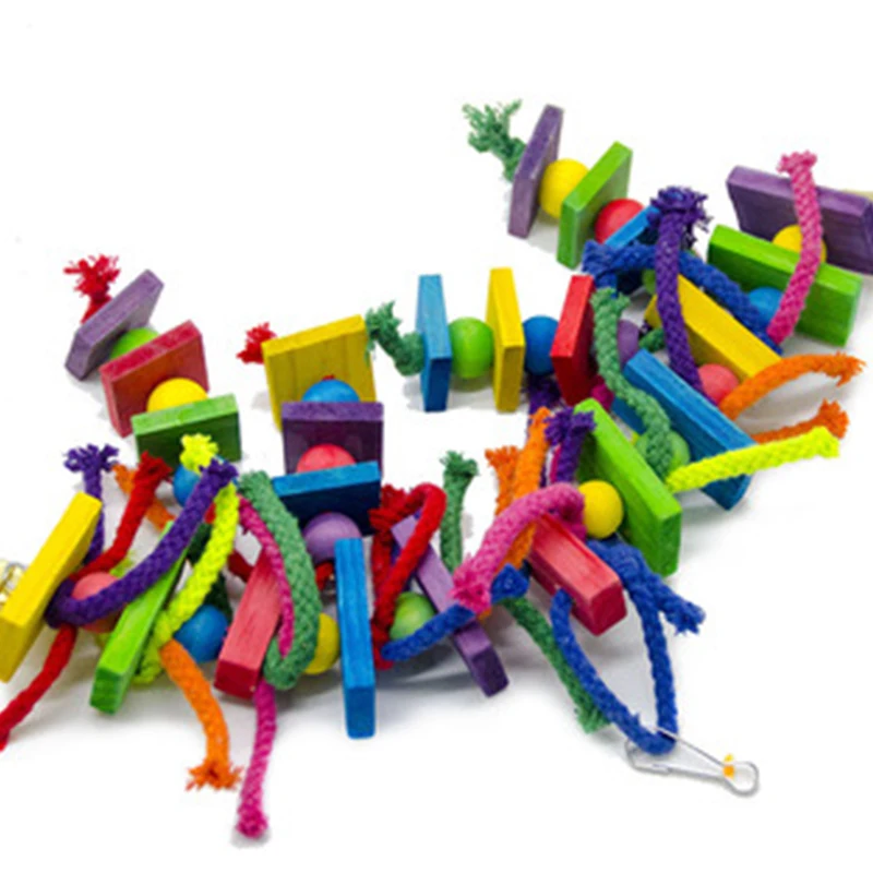8. Деревянные блоки соединены в прочной цепочке, в то время как клетка висит клип является безопасным и не будет травмировать пушистых друзей.