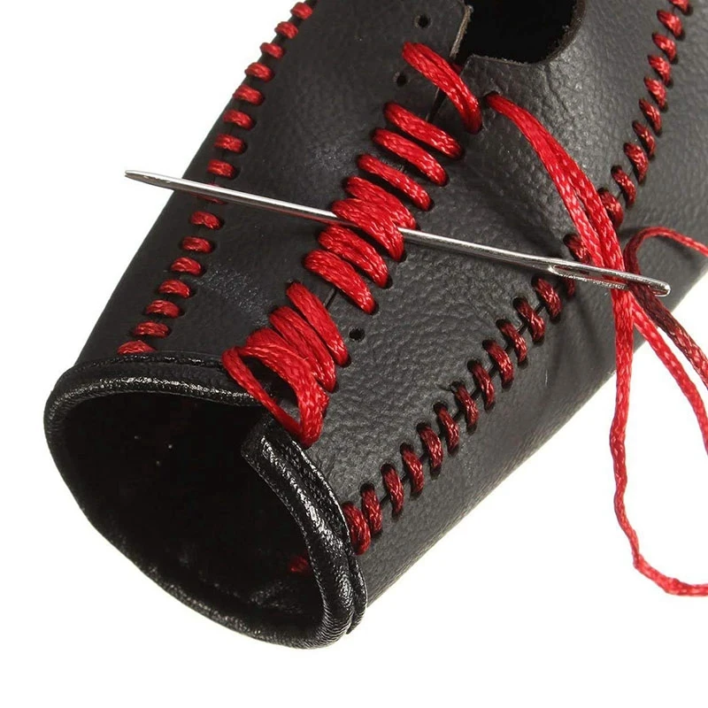 3. Завяжите нить хвостом, чтобы начать шить, оставьте нить узла под кожей в соответствии с отверстием и прошейте чехол