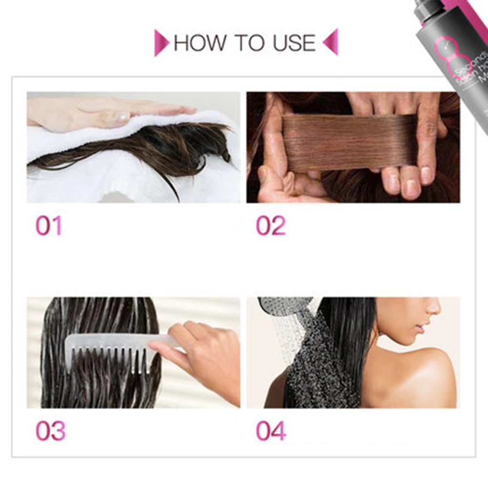 После очистки волос удалите лишнюю воду и нанесите щедрое количество на волосы и массируйте в течение 8 секунд. Затем тщательно краску. Маска почти чистая, однако после нанесения она превращается в белую.