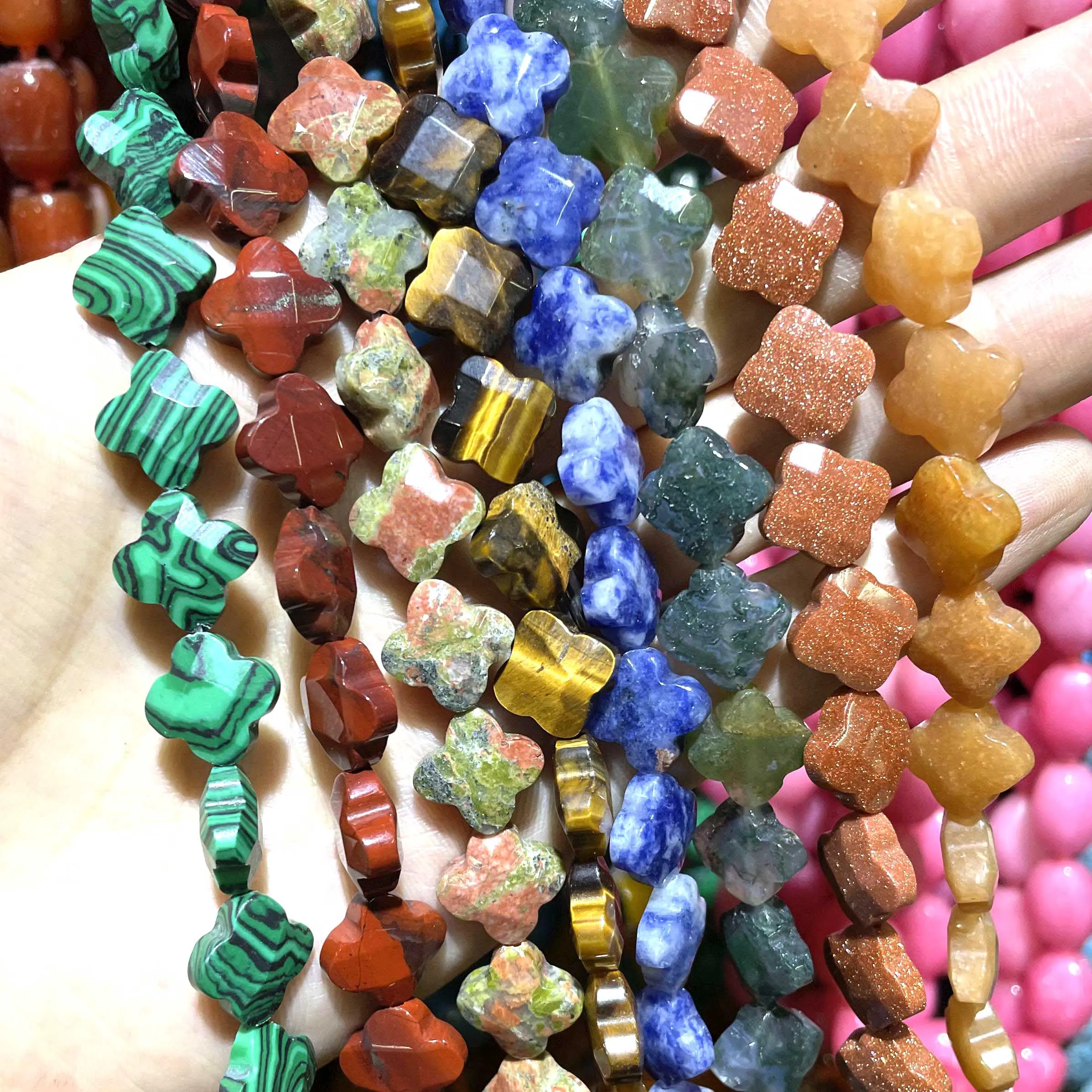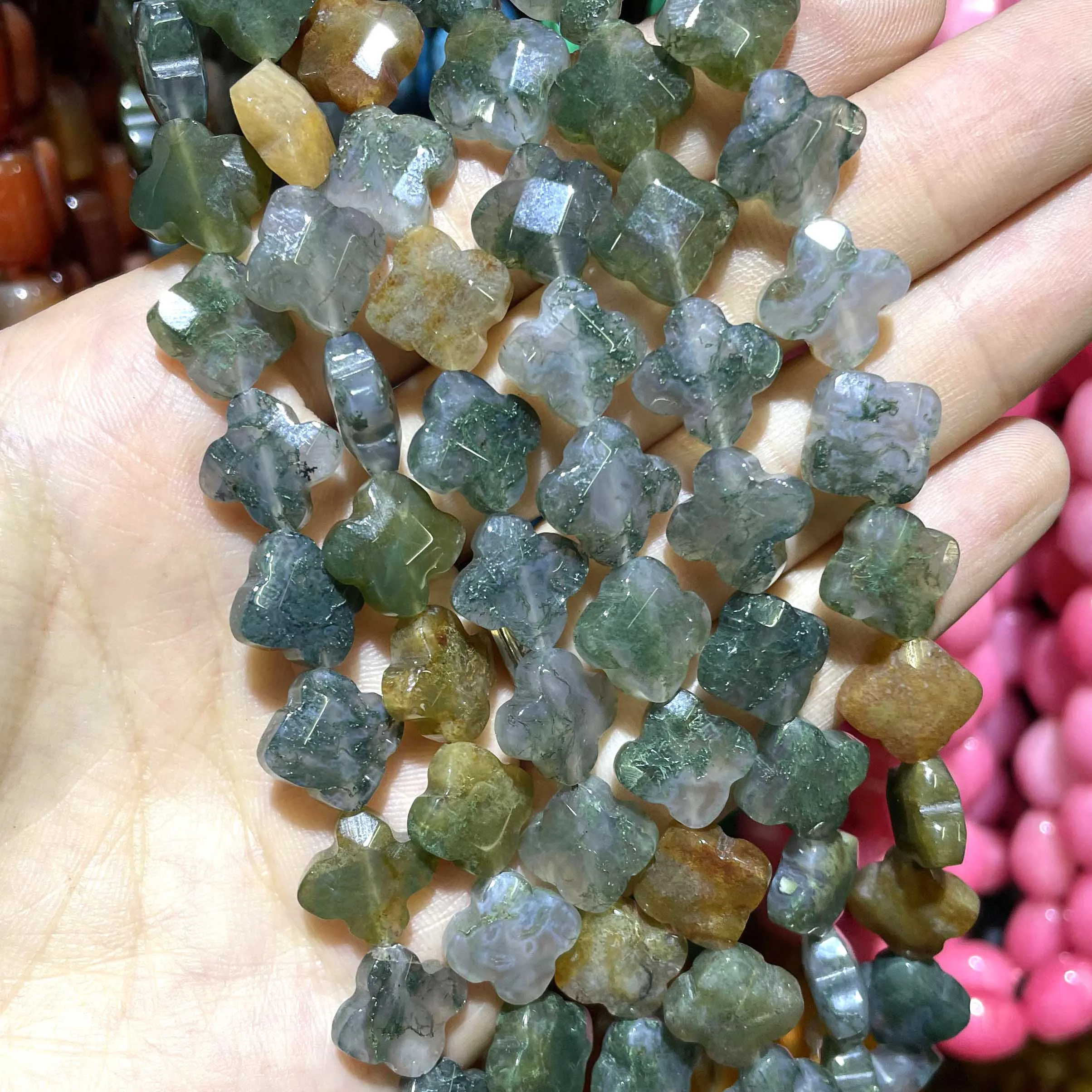 12 мм натуральный камень Агаты Jaspers кристалл клевер форма свободные бусины для изготовления ювелирных изделий DIY браслет ожерелье аксессуары