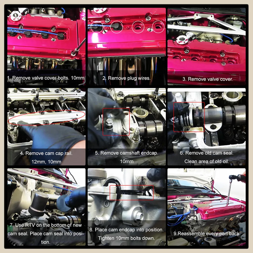 • 5. Удалите торцевые колпачки распределительного вала. (Болты 10 мм)