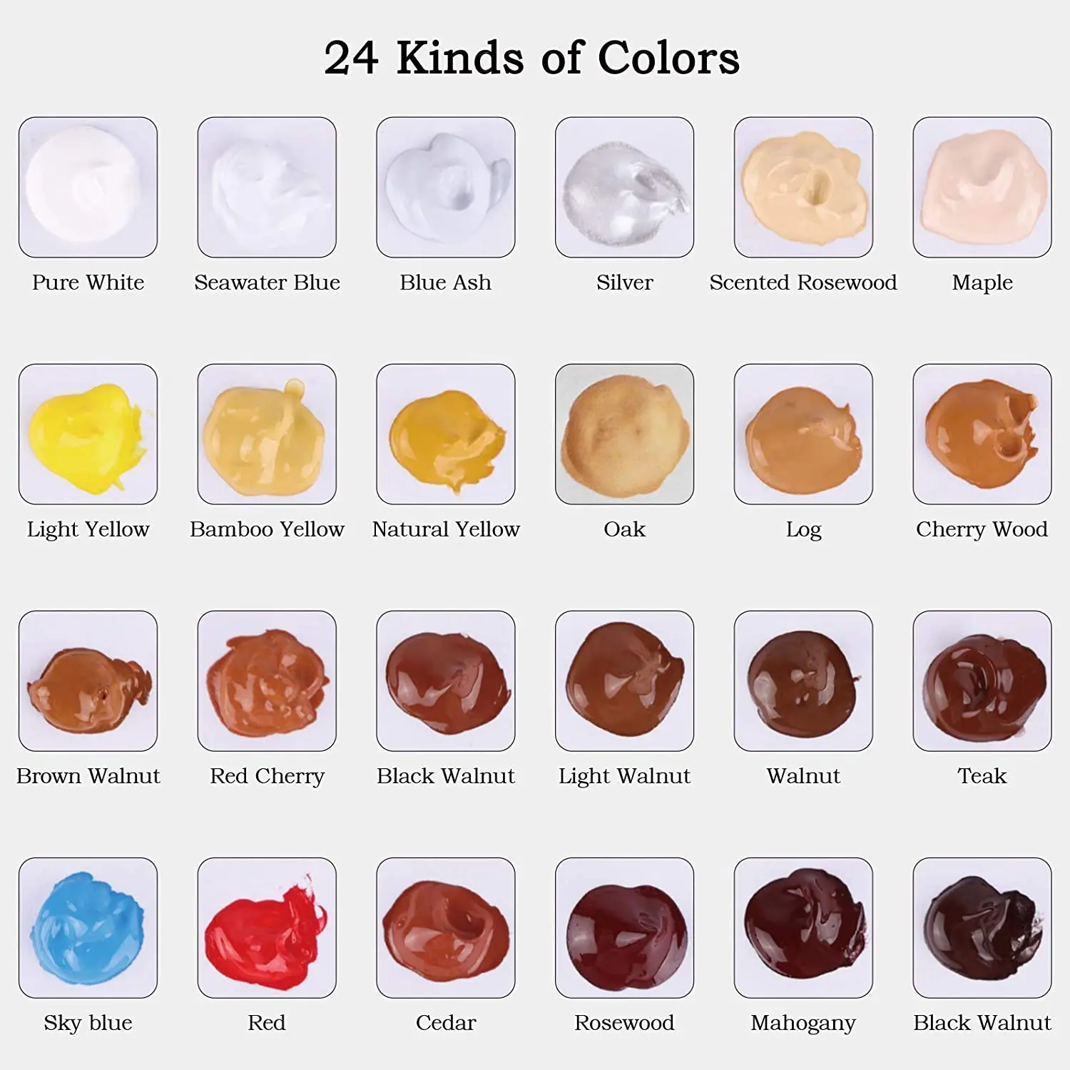 Серебро, орех, красный дуб, Вишневое дерево, бамбук желтый, коричневый орех, кедр, чисто белый, красный, бревно, черный орех, ароматический палисандр, легкий орех, натуральный желтый, розовое дерево, красное дерево, синий пепел, красная вишня, дуб, клен, светло-желтый, небесно-голубой, тик, Морской синий.