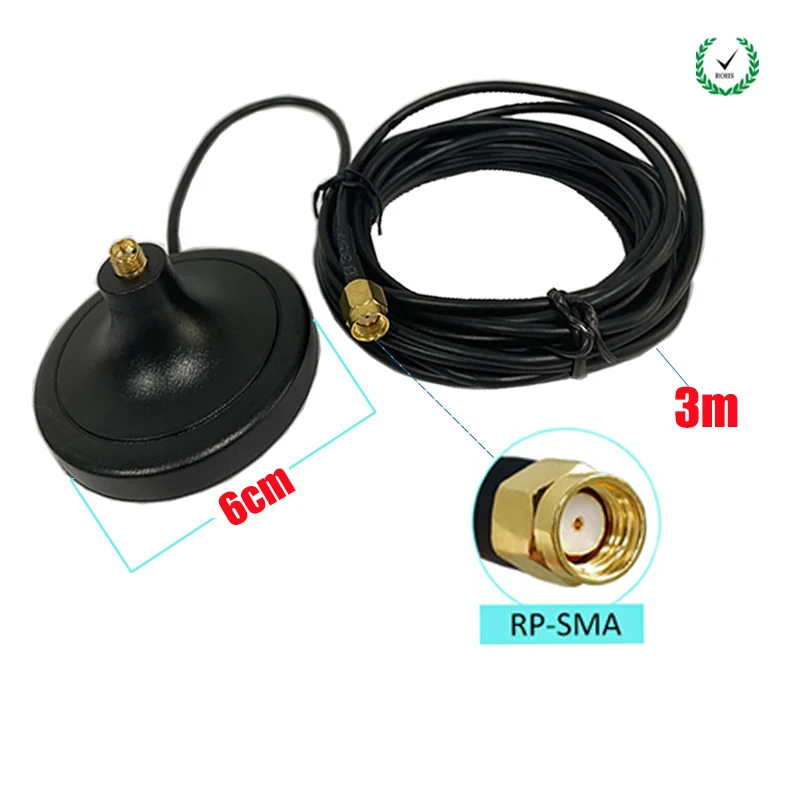 Удлинитель антенны Wi-Fi RP- Eoth SMA штекер-гнездо с кабелем 3 м IOTMagnetic Base для беспроводной сетевой карты маршрутизатора