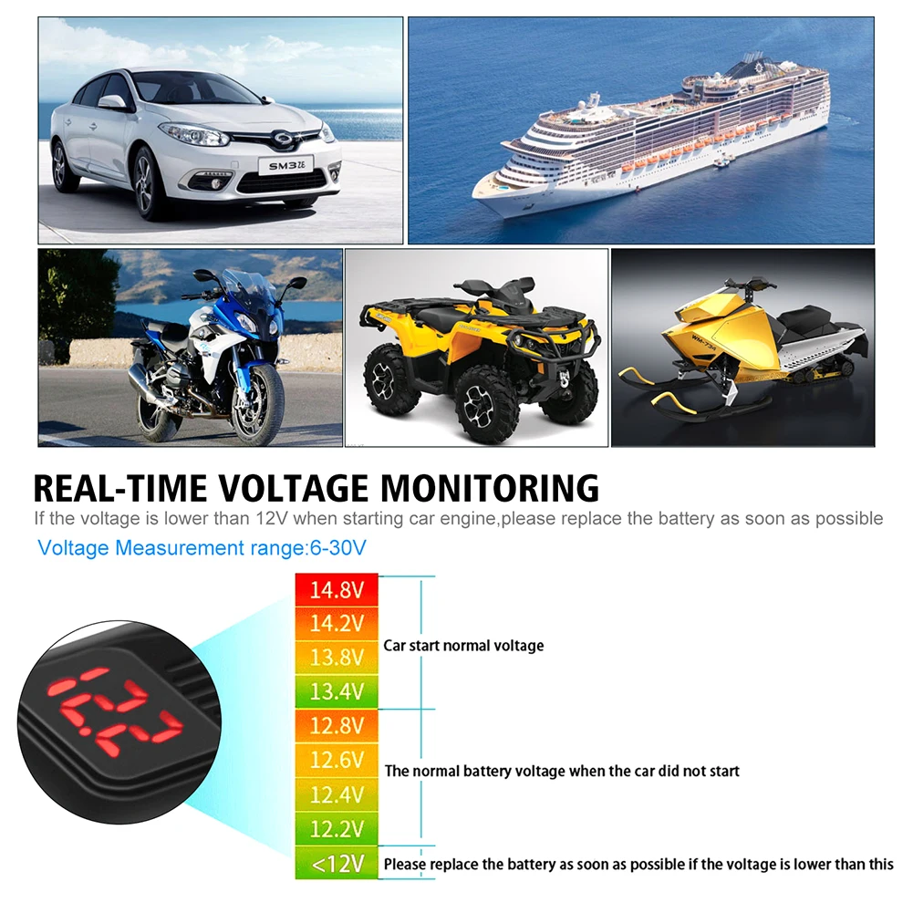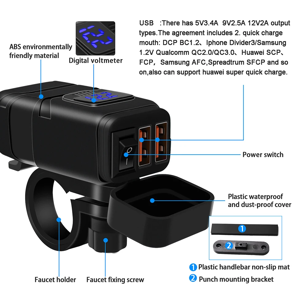 * 6. Тип товара: зарядное устройство SAE для мотоцикла с двумя usb-портами, светодиодный вольтметр и выключатель.
