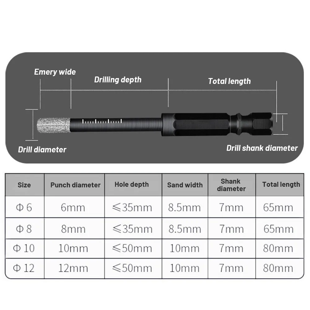 4pcs *Dry Diamond Drill Bit(6/8/10/12mm)