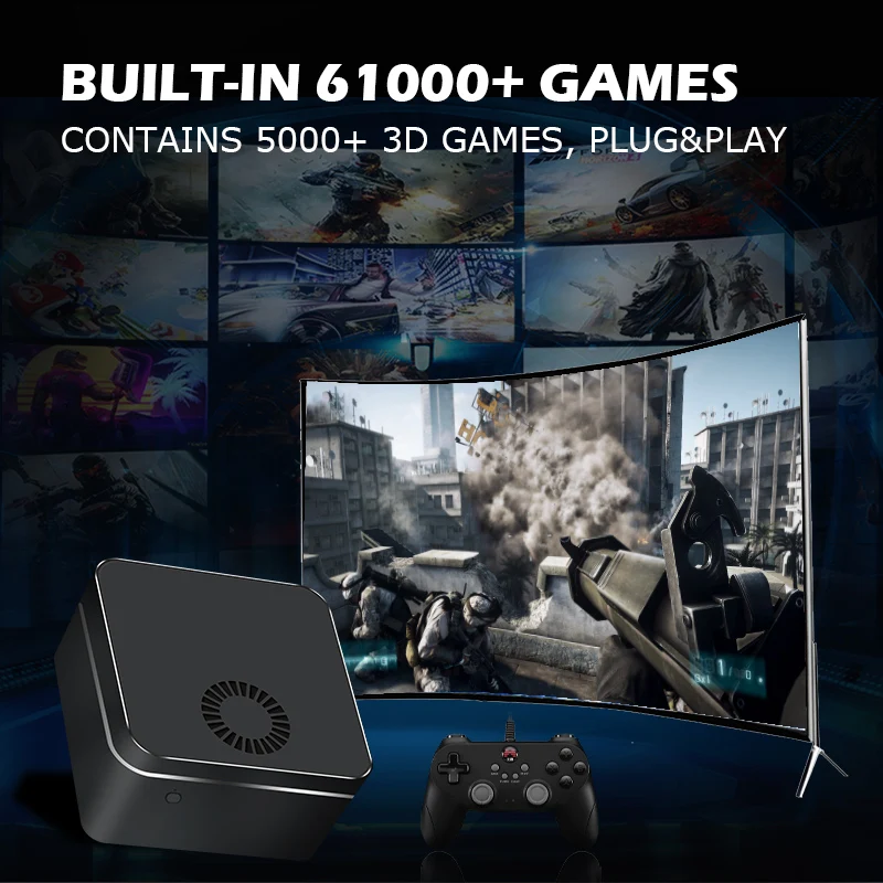 Эта ретро игровая консоль мини-ПК имеет встроенные 61000 + Ретро Классические игры, включая 5000 3D игр, покрывают каждую классическую ретро-игровую консоль, которую вы можете себе представить, вы действительно вернетесь в ретро-эраю и почувствуете идеальное сочетание и воспроизведение классической игровой консоли в стиле ретро.