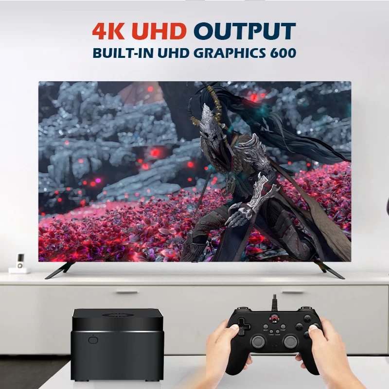 Мини-компьютер оснащен видеокартой высокой четкости Graphics 600 и поддерживает выход 3840*2160 HD, обеспечивая первоклассное качество игр и ТВ, с реалистичным качеством изображения, И может использоваться в качестве медиа-центра для просмотра ТВ-шоу или видеоигр.