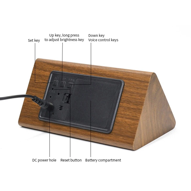 Режим энергосбережения, экран с активированным звуком: Включите режим энергосбережения и автоматически выключите экран через 10 секунд, затем до тех пор, пока звука более 60 децибелл или коснитесь будильник, он будет светильник снова в течение 10 секунд.