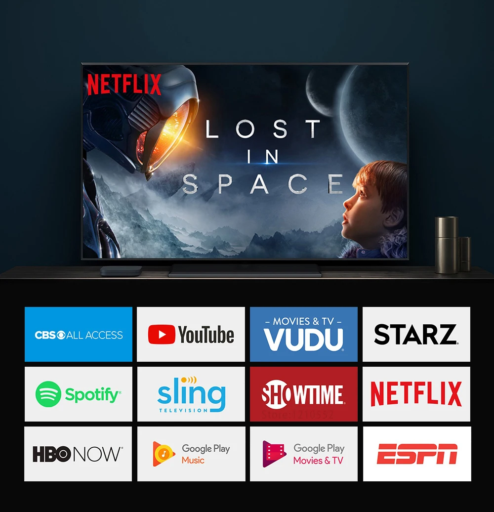 Помощник Google, вы можете быстро получить доступ к развлекательным мероприятиям, получить ответы и управлять устройствами вокруг вашего дома. Просто нажмите кнопку mic на пульте дистанционного управления, чтобы начать работу.