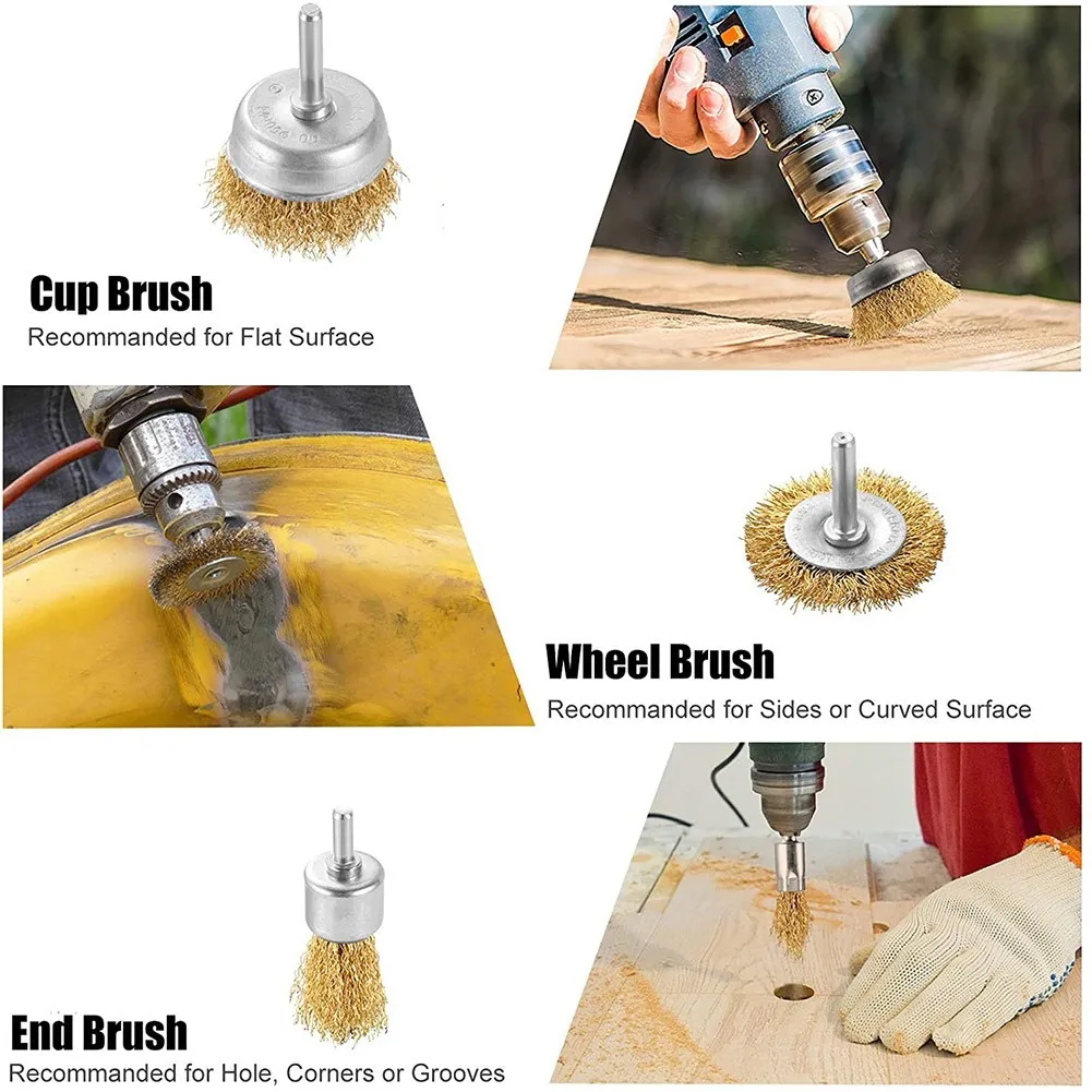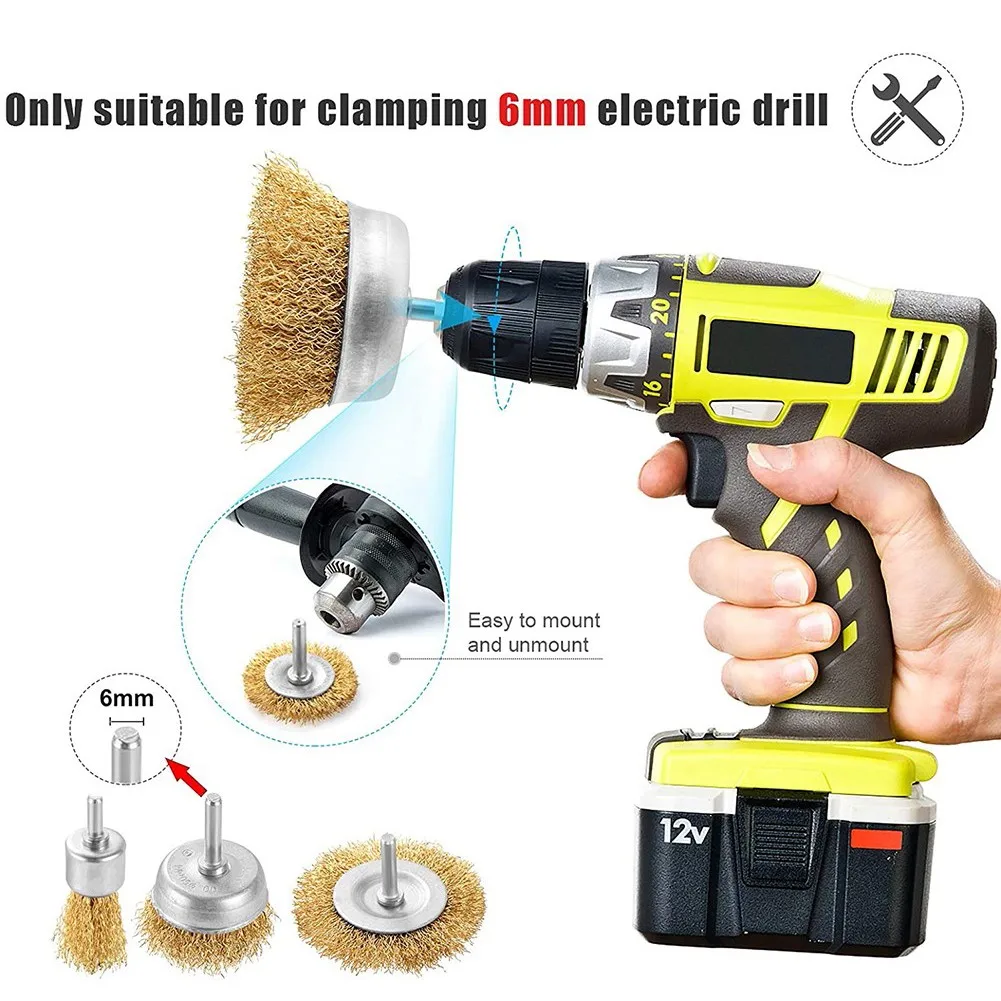 * Проволока покрытая латунью сверлильная щетка для удаления ржавчины, коррозии и краски. Закаленная стальная проволока для уменьшения обрыва проволоки и длительного срока службы