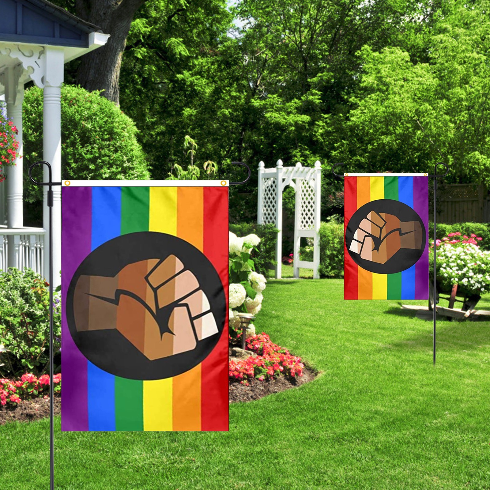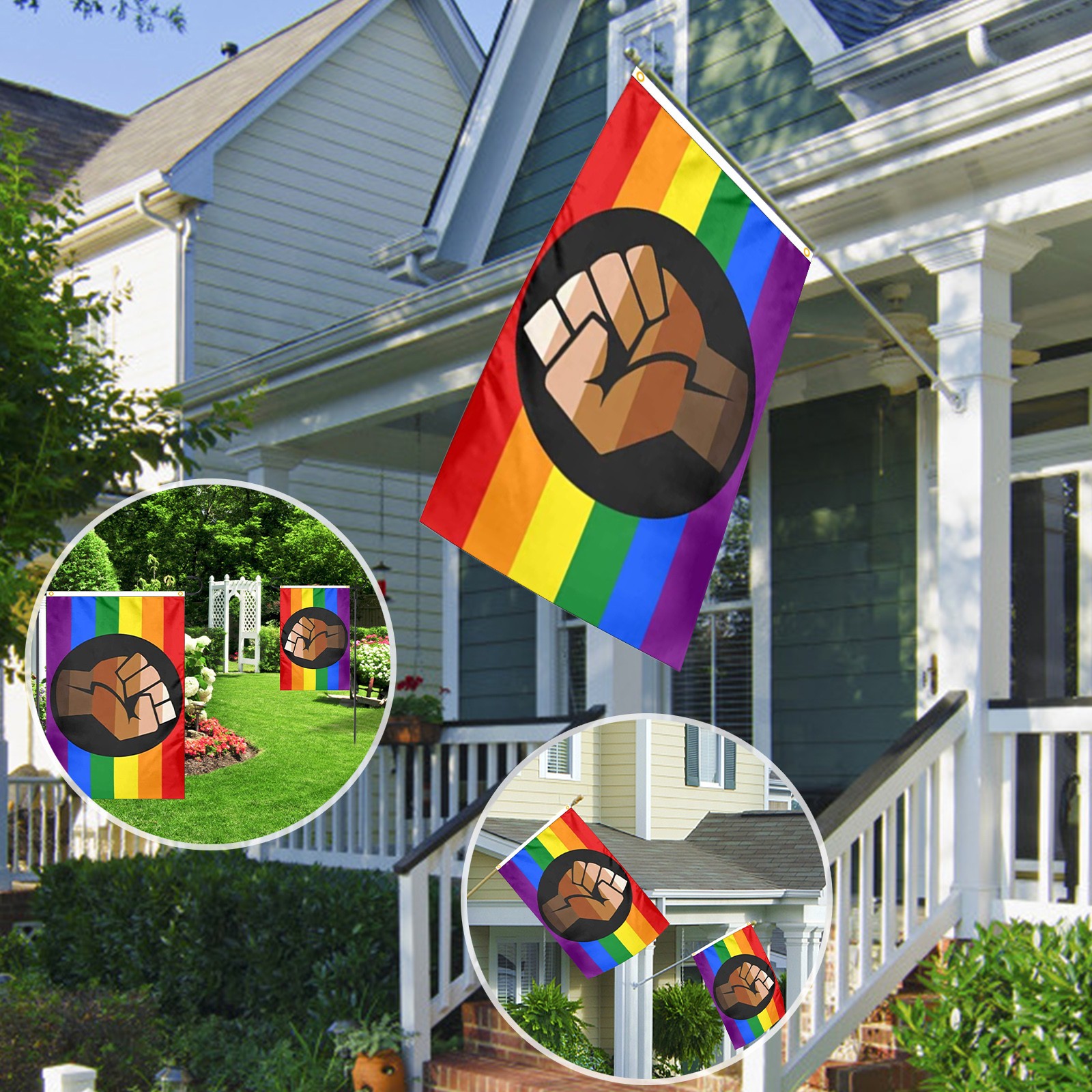 Прочный материал-каждый Радужный Флаг изготовлен из 100% полиэстера, долговечен и весит светильник. 2 металлические прокладки для крепления флага, идеально подходят для подвешивания внутри или от стандартных полюсов флага. Радужный Флаг будет лететь с нежным ветерком.