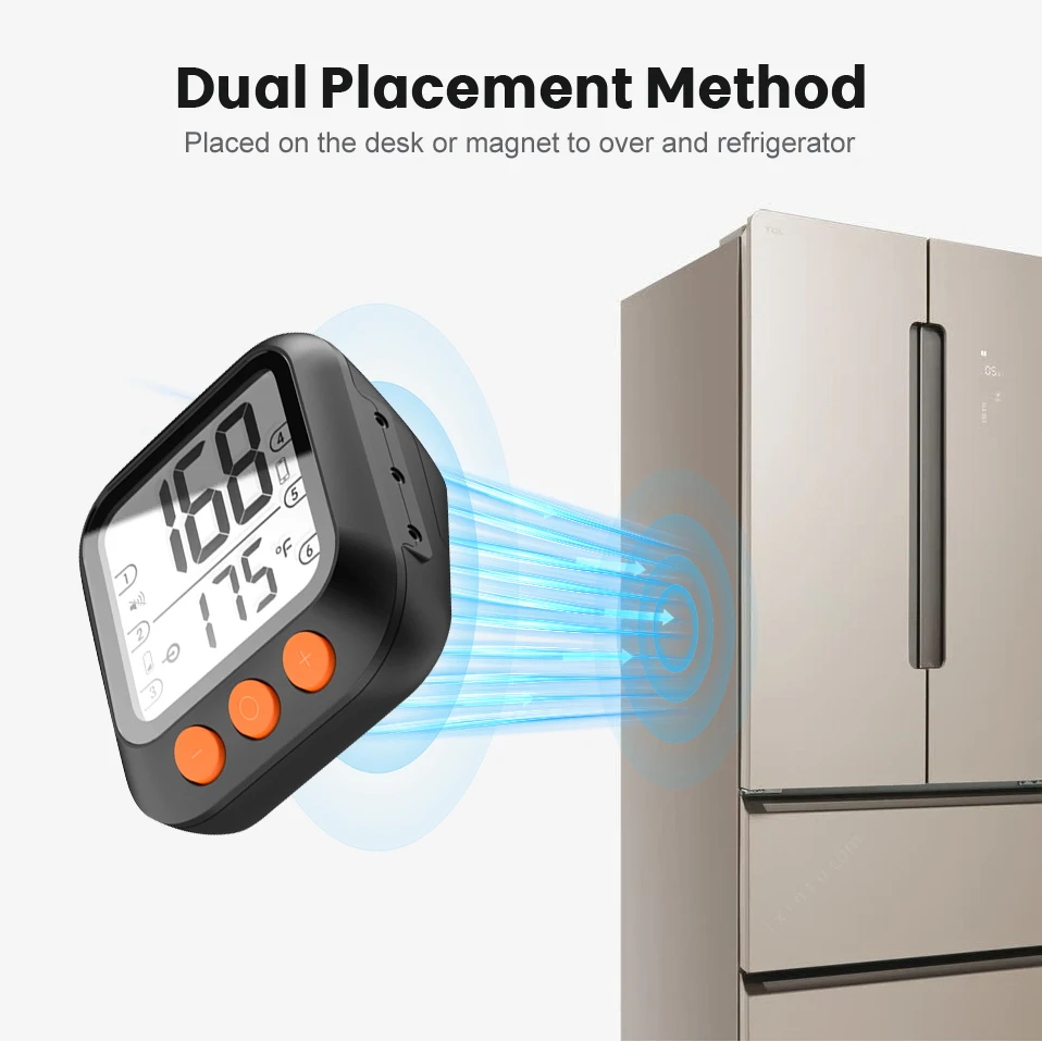 [Разместить на столе, магнит для печи метод двойного размещения] ---- BBQ-01 можно разместить на столе или магнит на холодильник со встроенной магнитной док-станцией внизу.