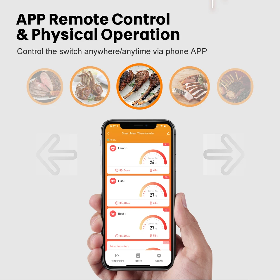 [Дистанционное управление и физическая эксплуатация приложения] ---- загрузите Smart life/Tuya Smart APP на свой телефон и планшет, чтобы управлять термометром и принимать будильник. Традиционная физическая операция без приложения также была сохранена.