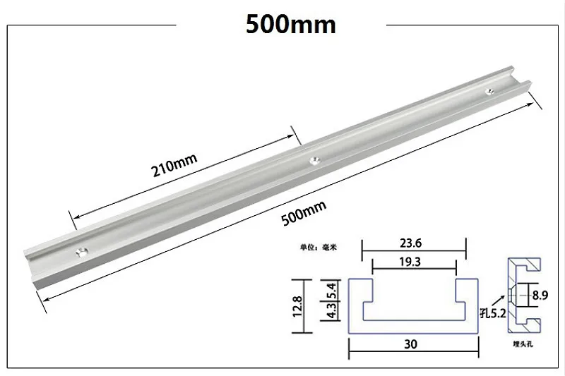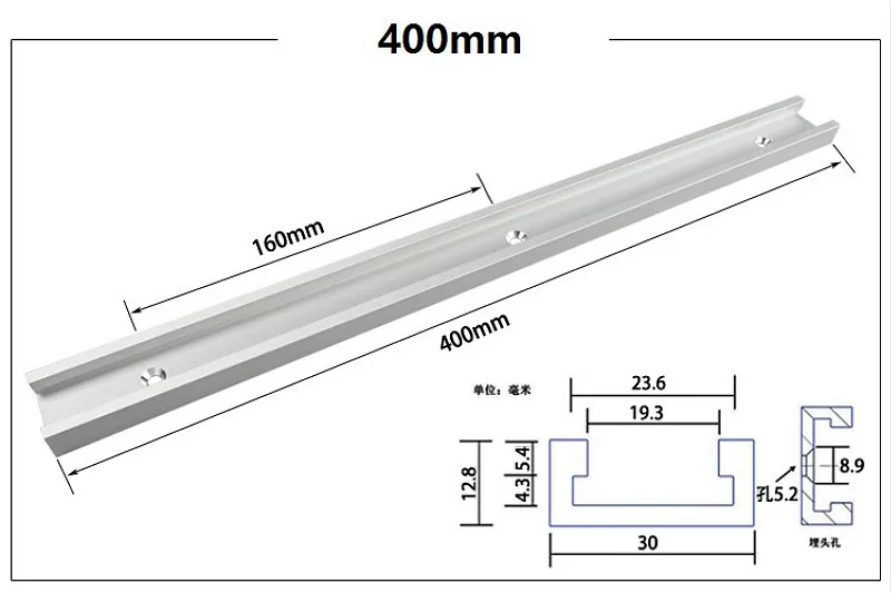 Товар продается отдельно Новинка и высокое качество Материал: алюминиевый сплав 6061 Торцевая планкаДлина: около 300 мм/450 мм/650 мм T-TrackДлина: около 300 мм/400 мм/500 мм/600 мм/800 мм T Ширина дорожки: 30 ммТорцевая планкаШирина: approx.19mm (+/-1,5 мм)