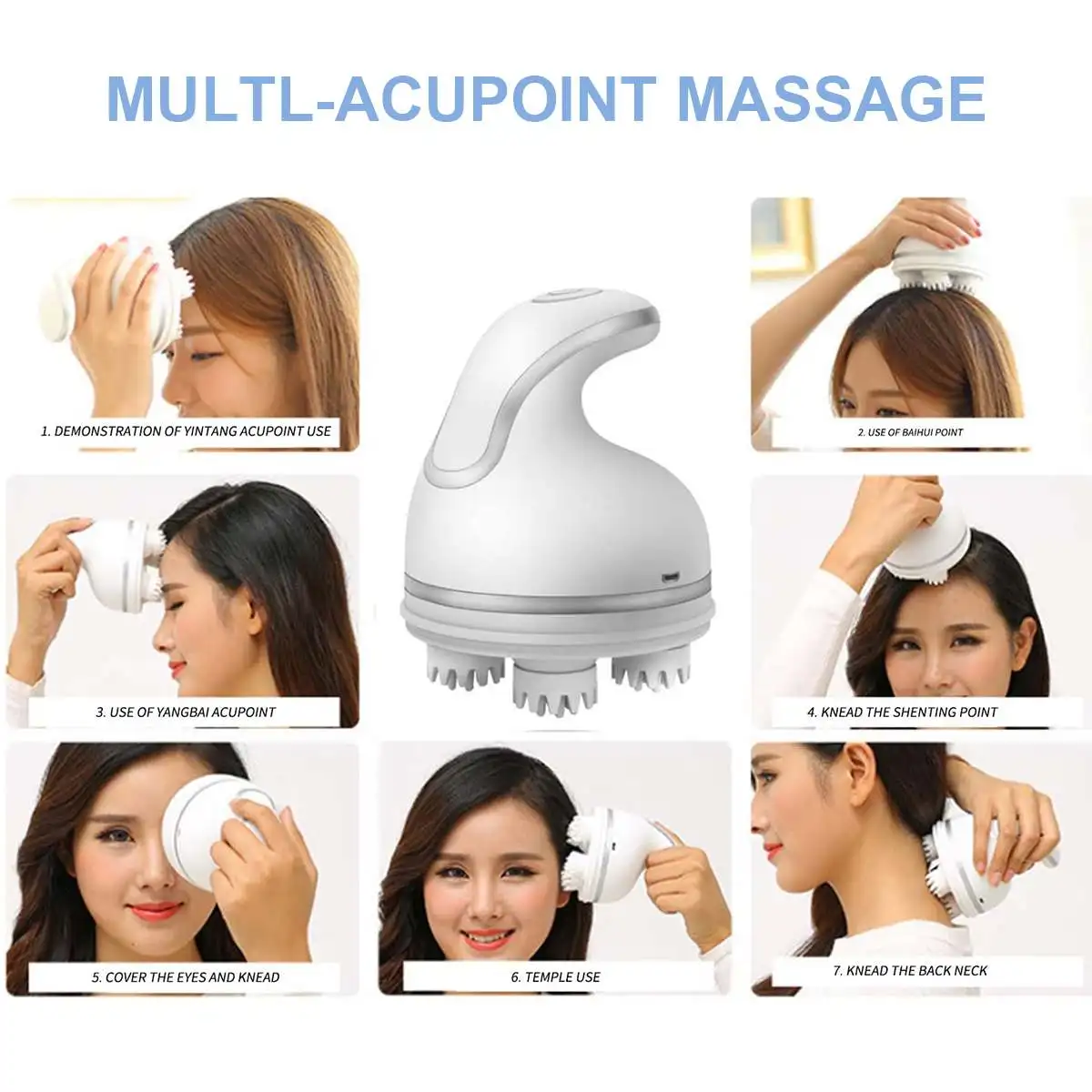 Широкое применение: массажер в основном используется для головы, но также может использоваться для любой части тела, включая руки, шею, ноги, талию, бедра и другие связанные с ними группы мышц. Подходит для спортсменов, усталых людей, пожилых людей, офисного персонала, водителей или практически для тех, кто переживает боли и боли.