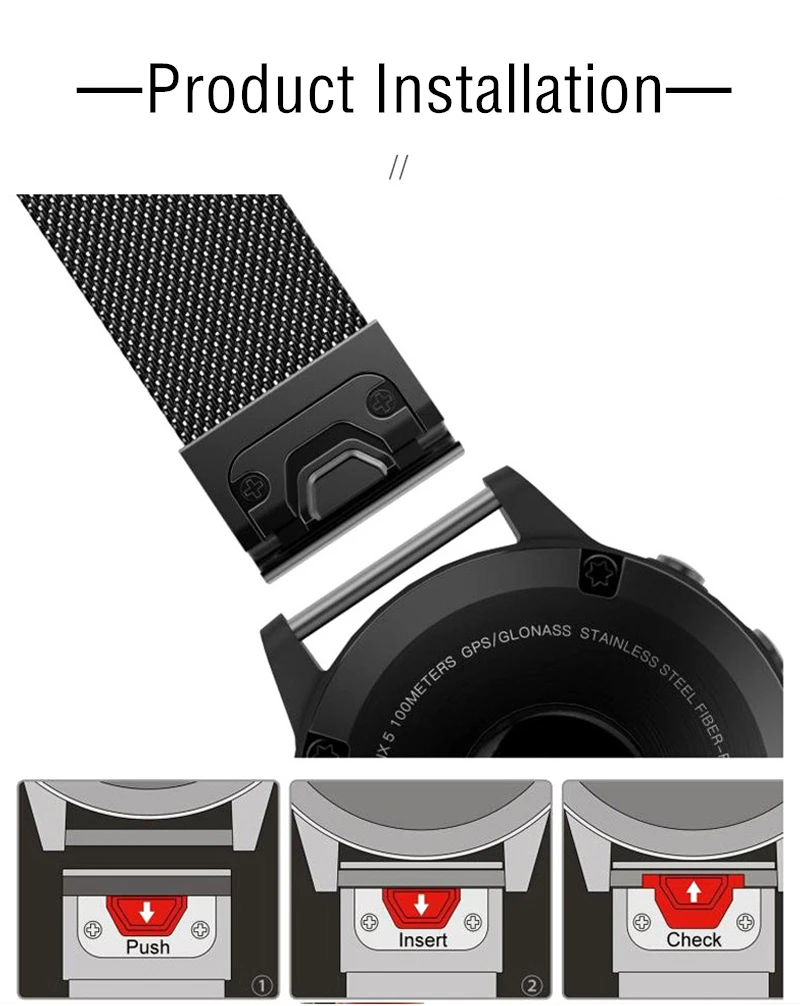 26 мм адаптор Совместимая модель: Garmin Fenix 3/Fenix 3 HR/Fenix 5X /D2 charlie /Desent MK1/Tactix Bravo, Foretrex 601, Foretrex 701