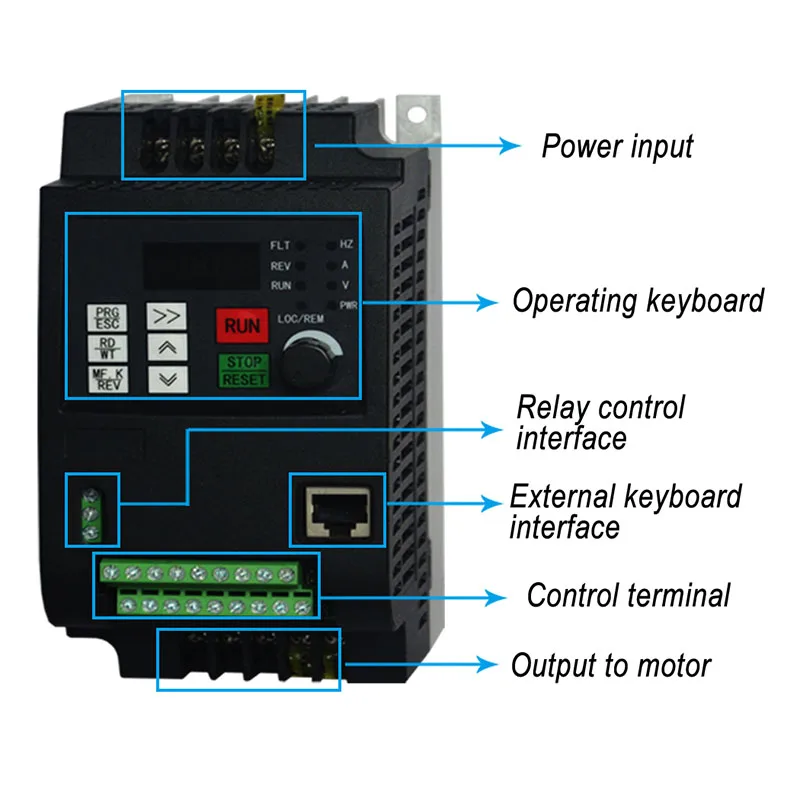 VFD AT2 0.45 кВт/0.75 кВт/1.5 кВт/2,2 кВт однофазный 220 В и однофазный преобразователь частоты для однофазного двигателя