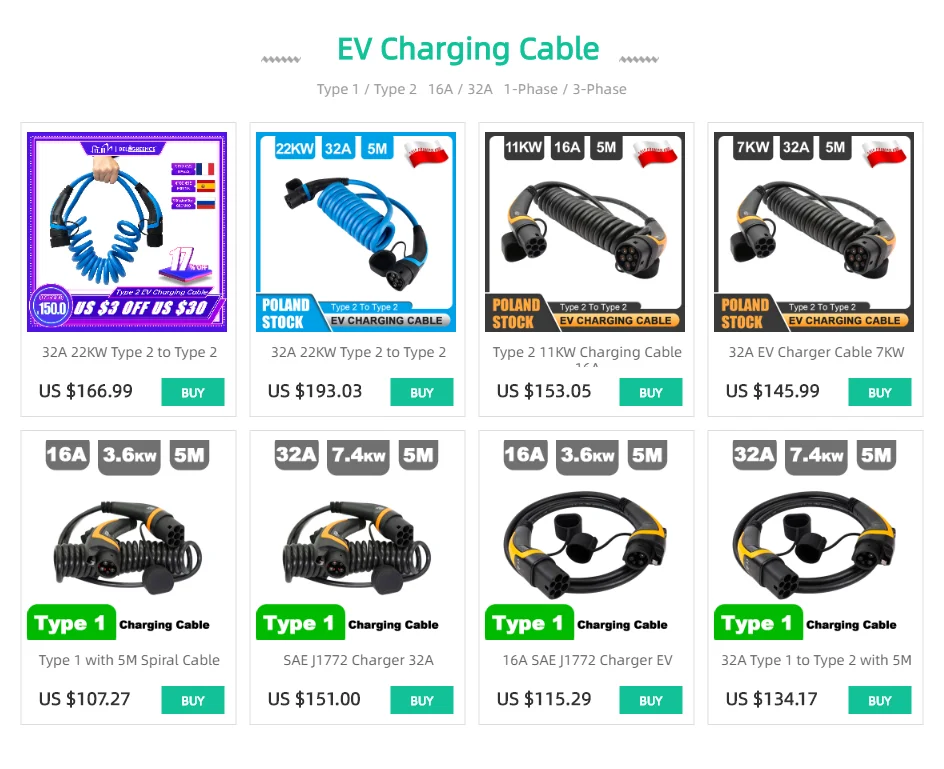 22 кВт/11 кВт Тип 2 EV кабель для зарядки
