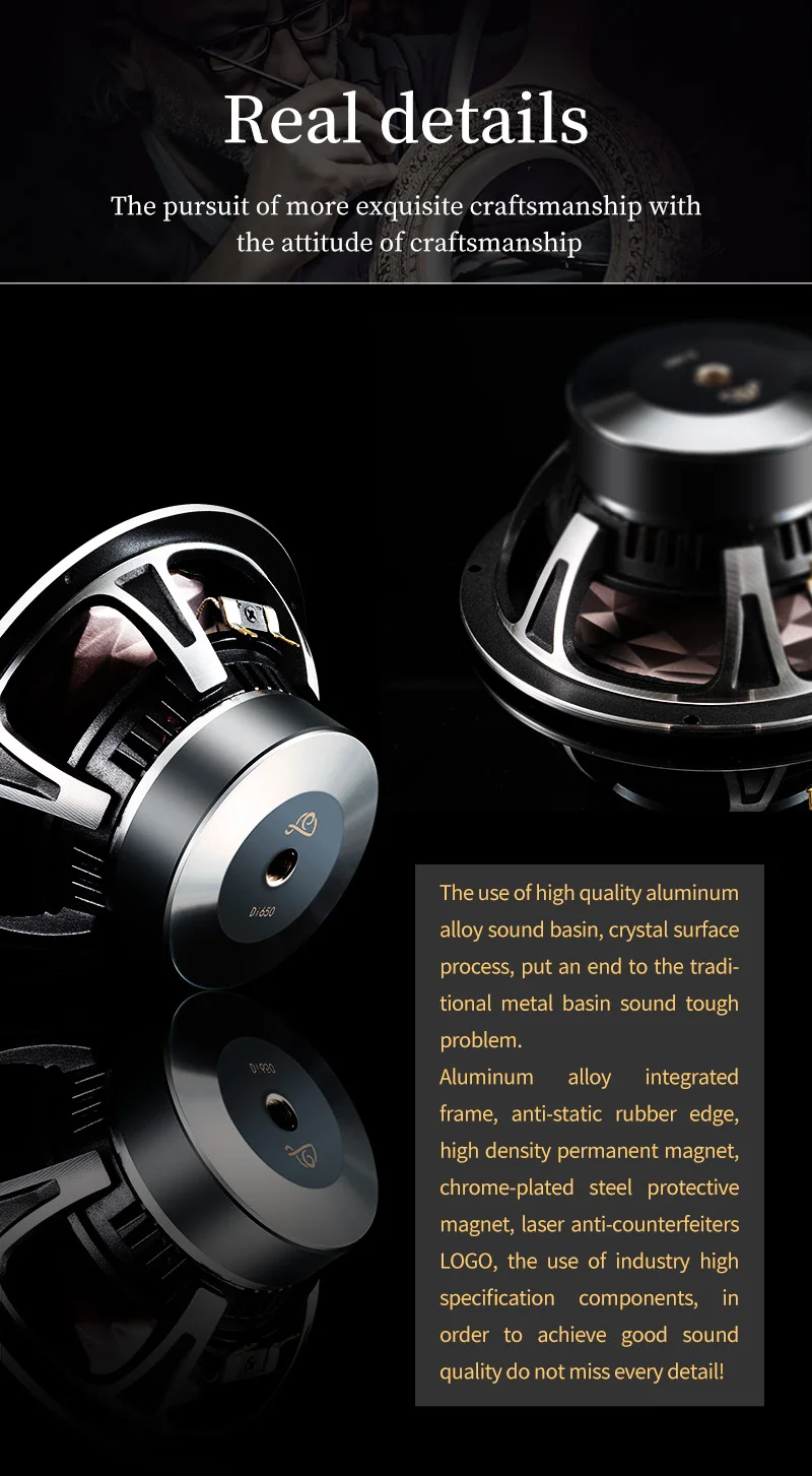 Звуковой конус: изготовленный на заказ цельнокроеный резиновый край, металлический Хрустальный конус звука, многогранные отзывы звука, каждая музыка имеет различные представления, точность среднего тона и сильные басы.