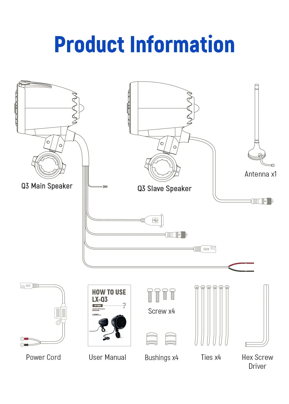 Lexin Q3 мото колонки 150 Вт Bluetooth 5,1 колонки для 7/8 до 1 1/4 мотоцикл IP67 водонепроницаемый, встроенный светодиодный сигнал поворота