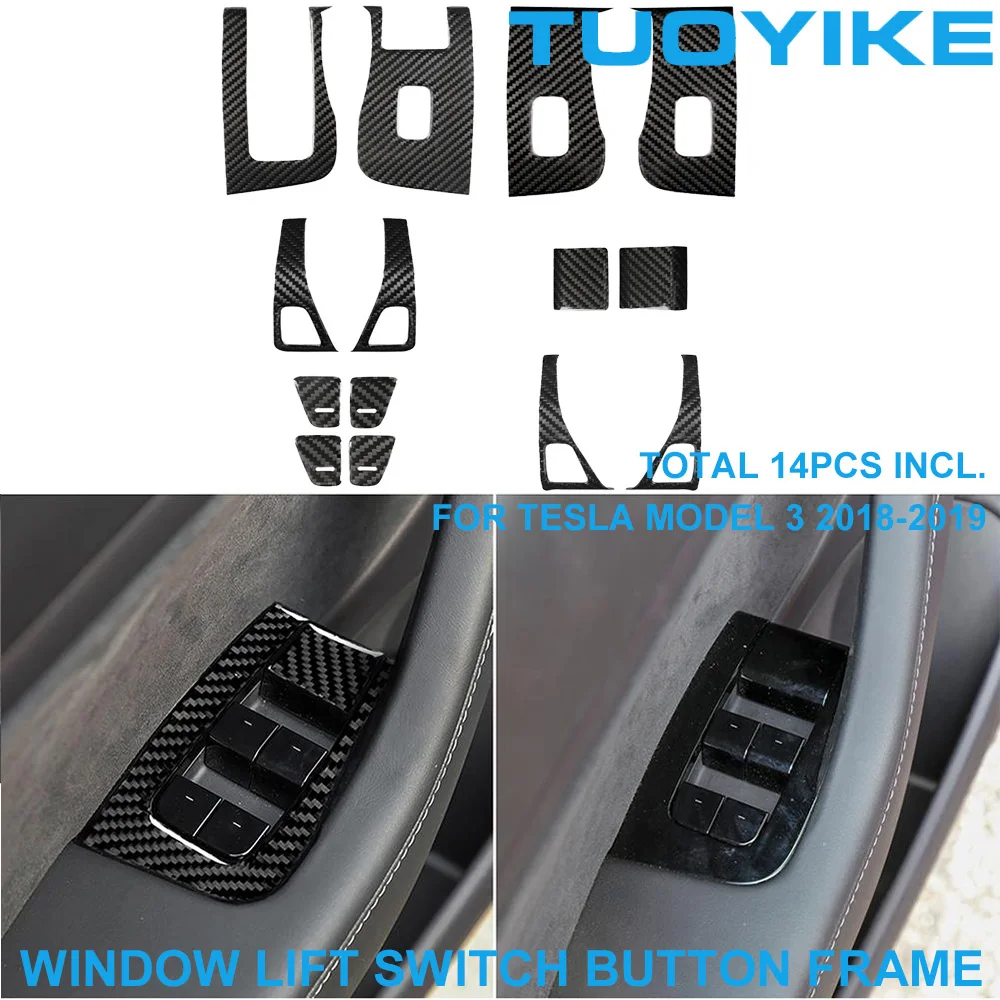 Настоящая внутренняя дверная ручка из углеродного волокна, кнопка Подъема Окна, рамка, накладка, наклейка для Tesla MODEL3 2018-19