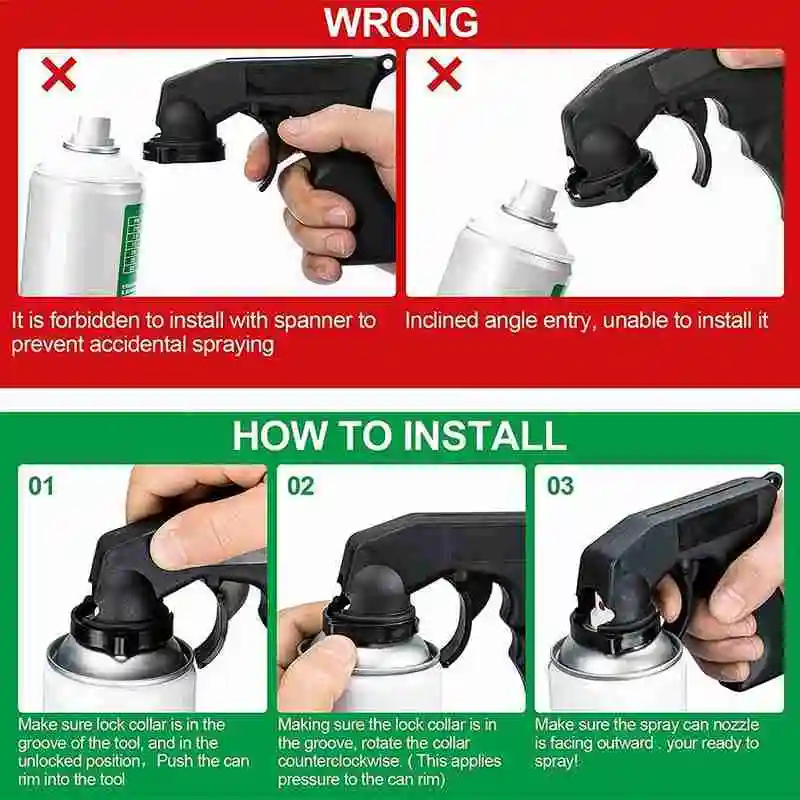 Преимущества: подходит для большинства баллонов под давлением на рынке, что может уменьшить боль, вызванную длительным нажатием сопла и избежать неравномерного распыления; Этот продукт имеет характеристики быстрой установки, простое использование, дешевая Чистка и экономия труда. Характеристика