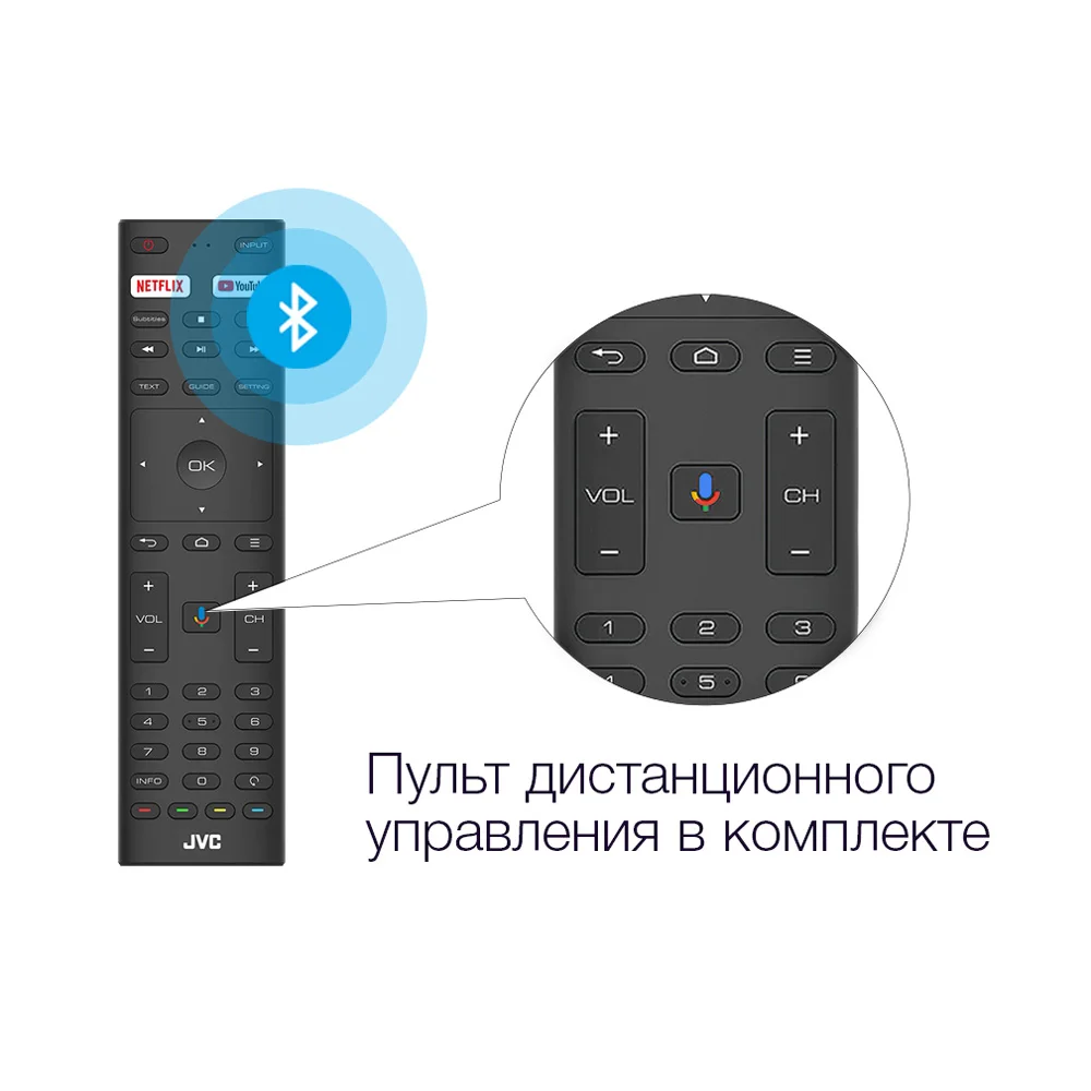 Android TV JVC оснащены встроенным BLUETOOTH модулем. Подключайте наушники, колонки и другую аудио и видеотехнику к телевизору без лишних проводов.