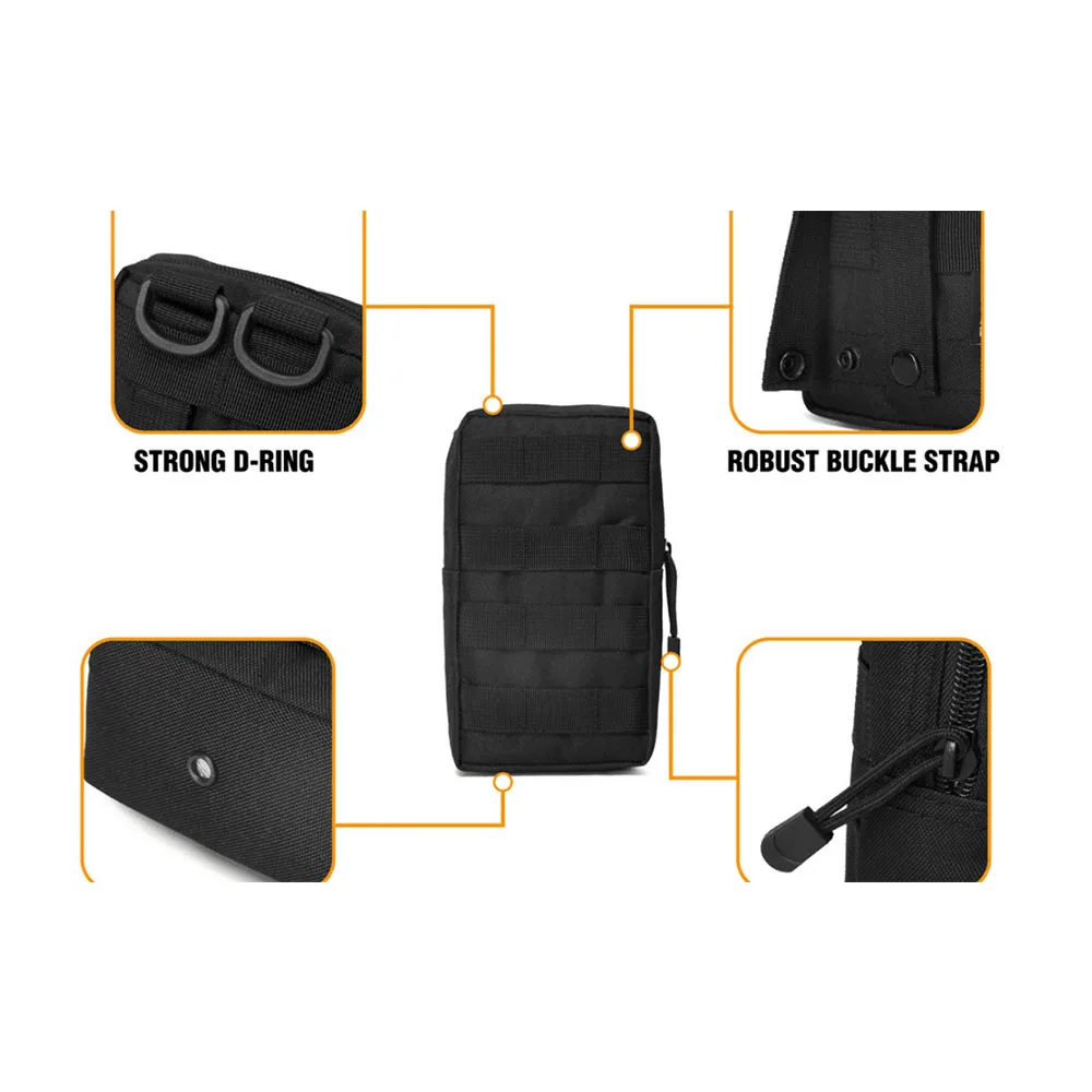 【 То, что вы получаете 】-посылка включает в себя 2 упаковки Молле мешков в размере 8,26 ”(H)x 2,16”(W)x 4,32 ”(L), изготовлено из высококачественной ткани Оксфорд с высокой плотностью 900D с отличной износостойкостью и водонепроницаемостью, чехлы Molle предназначены для использования в течение длительного времени. 【 Система MOLLE 】-тактические хозяйственные сумки EDC с дизайном системы MOLLE, задние 2 ремня molle можно прикрепить к тактическому рюкзаку, тактическому поясу, боевому жилету или другим тактическим шестеренкам, легко подключить Чехлы к другому моллерному оборудованию. 【 Отличное хранение 】-основной карман имеет большой объем дизайна, чтобы легко хранить ваши личные вещи, такие как мобильный телефон, брелок, маленькое GPS устройство, медицинские принадлежности, инструменты для выживания на открытом воздухе, тактическая ручка, цифровые камеры, в то время как дополнительные ремни могут легко держать карабин или фонарик. 【 Быстрый и полный доступ 】-высококачественные двухсторонние молнии открываются бесшумно и гладко, что позволяет полностью и быстро получить доступ к внутренним деталям, не открывая чехол полностью, это помогает много особенно в чрезвычайных случаях, легко и практично в использовании. 【 Удовлетворенная покупка 】-мы производим нашу продукцию в соответствии с высочайшими стандартами качества и подчеркиваем послепродажное обслуживание клиентов. При возникновении любых проблем, просто свяжитесь с нами через ваш центр покупателя, чтобы получить эффективное решение. Наша оперативная служба поддержки клиентов, несомненно, решит все ваши проблемы. Посылка: 2 тактических мешка Molle с 4 карабинами