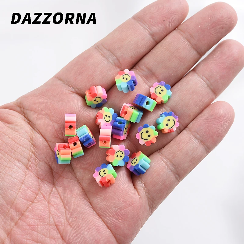 50/100 шт цветные бусины в форме подсолнуха с смайликом из полимерной глины для изготовления ювелирных изделий Очаровательные аксессуары для браслетов своими руками