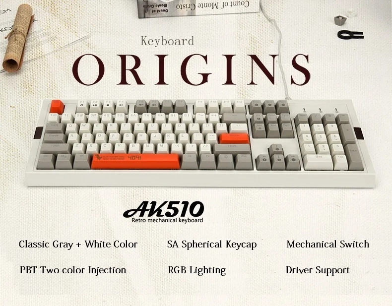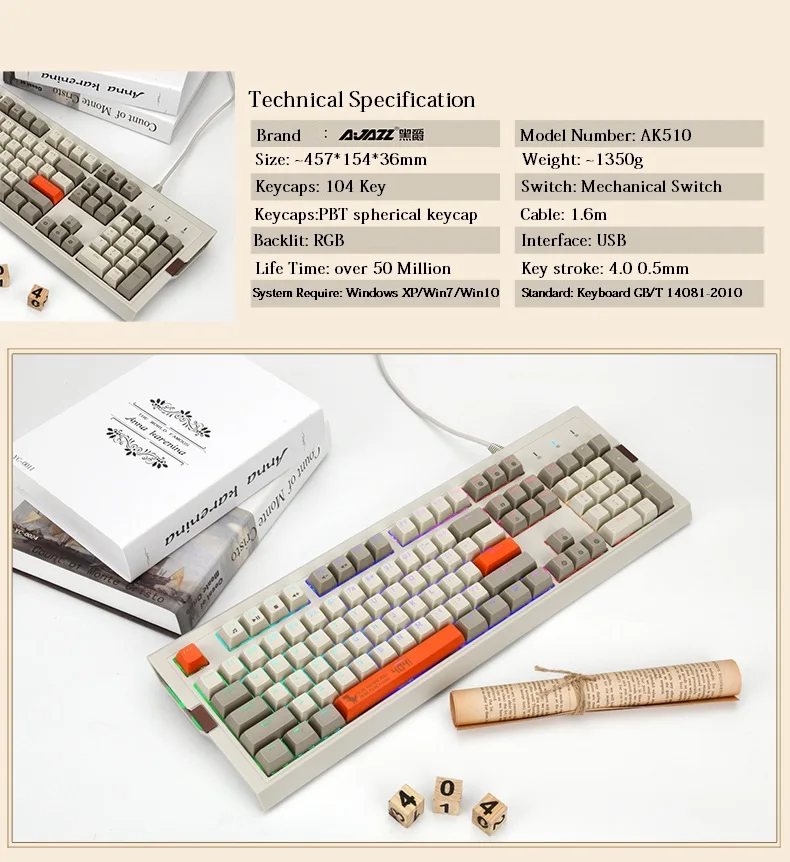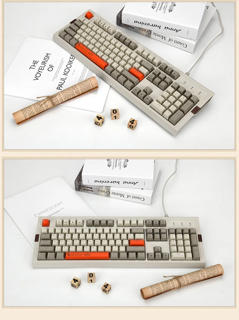 AJAZZ AK510 104 клавиши PBT SA Сферический ключ программируемый макро Функция Ретро Проводная Механическая клавиатура вишня Mx Красный переключатель