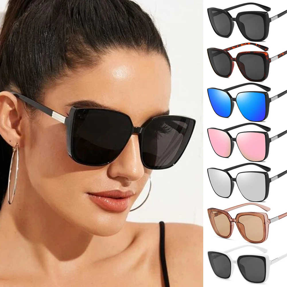 Модные пластиковые очки кошачий глаз, большие солнцезащитные очки, брендовые дизайнерские винтажные зеркальные солнцезащитные очки в стиле ретро, летние женские очки UV400