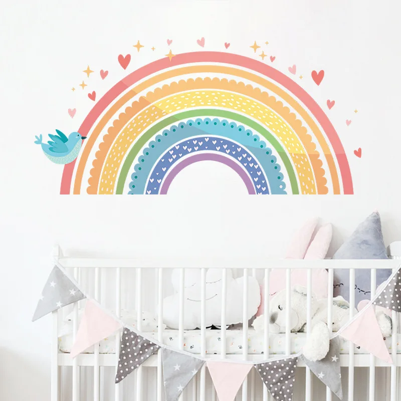 Мультяшные радужные Животные наклейки на стену для детской комнаты украшение для детской комнаты настенный декор птица Сделай Сам Детские художественные наклейки постер