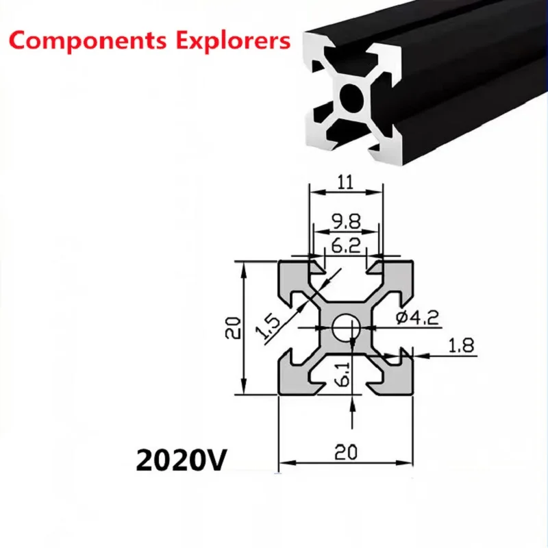 2040V-solt черный алюминиевый экструзионный профиль