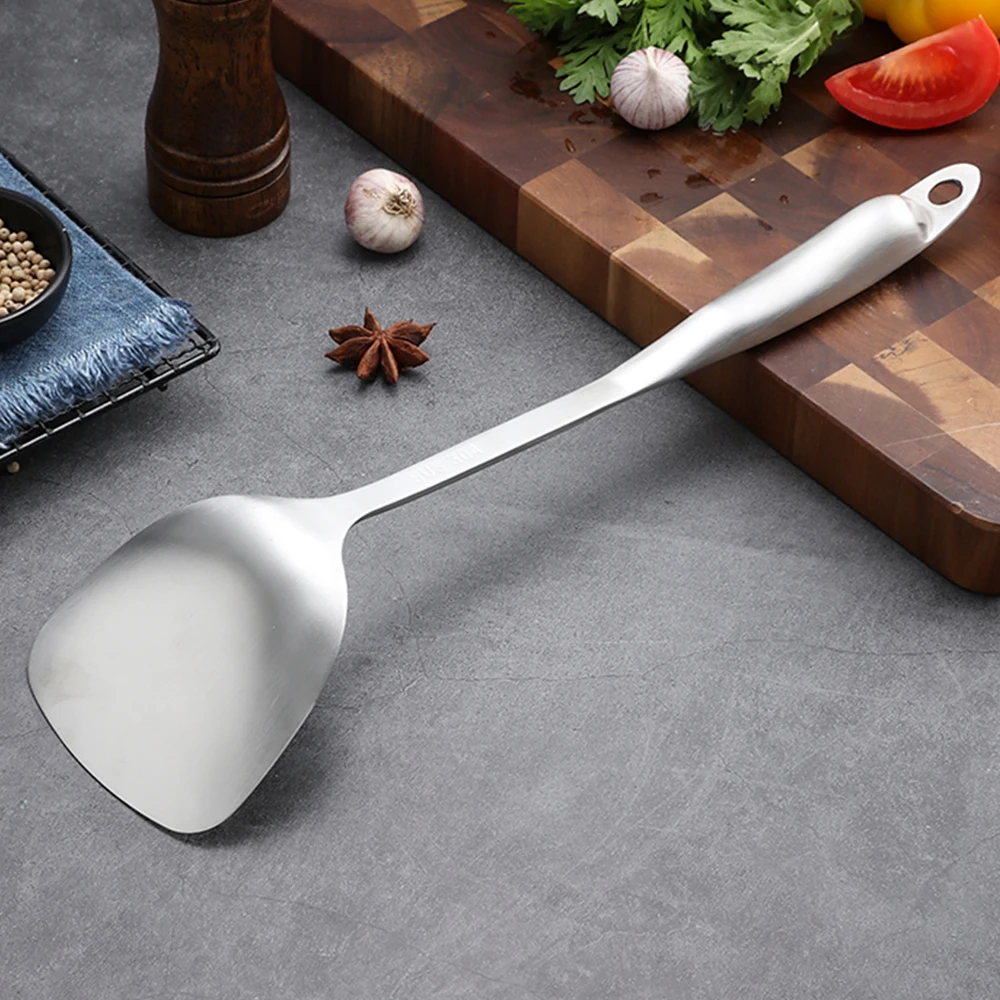 Изделие изготовлено из высококачественной нержавеющей стали 304 с длительным сроком службы, простой чисткой, без вмятин, трещин, ржавчины или мусора. Гладкие изогнутые края, чтобы соответствовать изгибам вашего горшка или чугунной кастрюли, не повреждая первоначальную форму пищи или не царапая горшок. Отличный кухонный помощник с полными функциями-это новый подарок для семьи, друзей или любителей кухни.