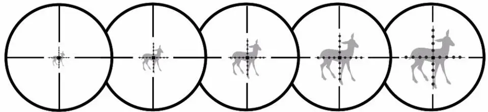 Преимущество телеметрических ретикул (например, дальномер и Mil-dot и т. Д.) заключается в том, что изображение цели и расстояние между точками остаются постоянными даже при изменении увеличения. Это система, которая широко используется Топ военных поставщиков в настоящее время. Следующая схема A и B для вашей справки по изменению размера сетки при изменении увеличения.