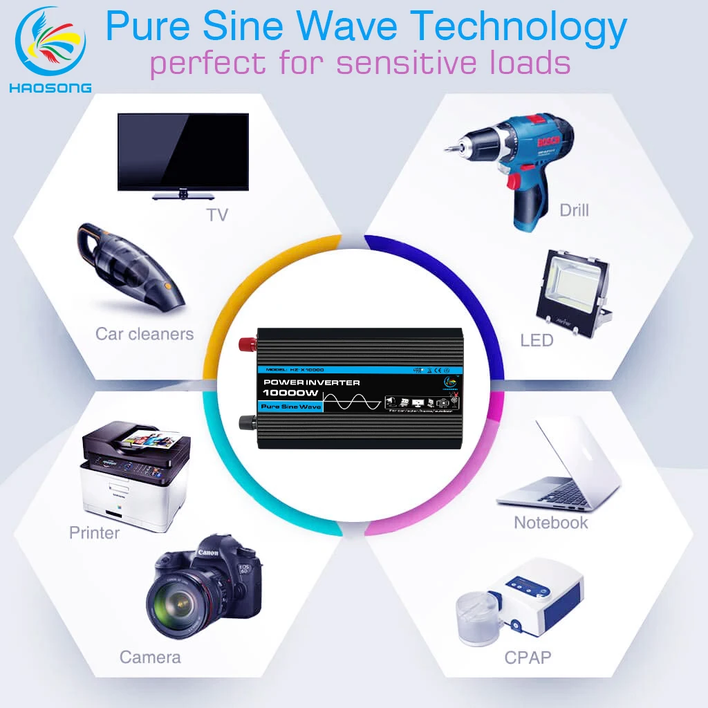 10000 Вт автомобильный инвертор постоянного тока 12 В/24 В/48 В/60 в переменный ток 220 В чистая Синусоидальная волна инвертор 12 В 220 В авто автомобильный преобразователь инвертор
