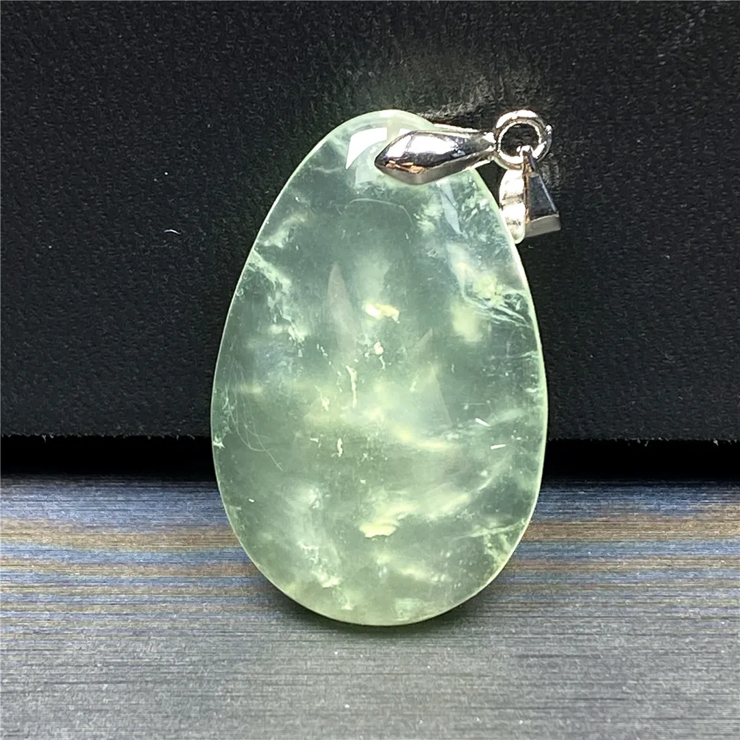 Топ Натуральный Зеленый Пренит Кулон Ювелирные изделия для женщин Леди Мужчины Исцеление любовь подарок хрустальные бусы драгоценный камень Серебряный камень AAAAA Прямая поставка