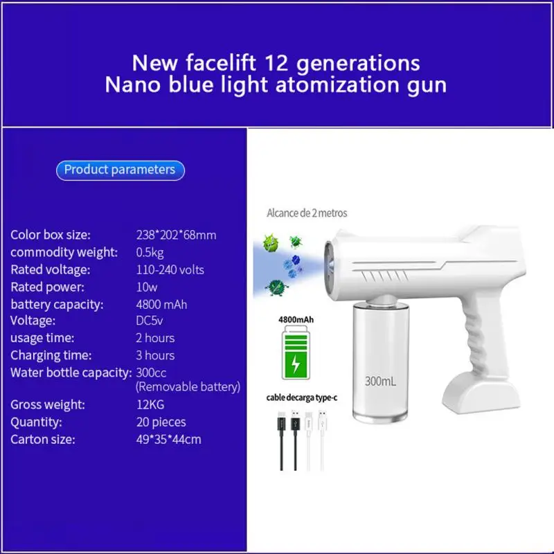 300 мл беспроводной синий светильник с паровым распылителем для дезинфекции пистолет с usb-зарядкой