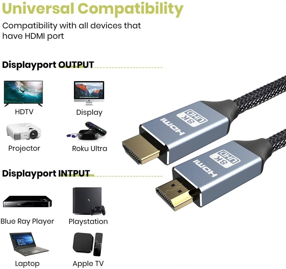【Широкая Совместимость 】 кабель hagибис HDMI 2,1 8K идеально совместим с Apple TV, LG TV, Samsung QLED TV, Fire TV, Roku, Playstation, Sony 8K UHD TV, Blu-ray, ноутбук, ПК, DVD, PS3, PS4 Pro, PS5, Nintendo Switch, Xbox 360, Xbox one S и Wii U, Tivo, Visio, Blu-Ray плеер, проектор и т. д. обратная совместимость с более ранними версиями HDMI и может использоваться с имеющимися устройствами HDMI.