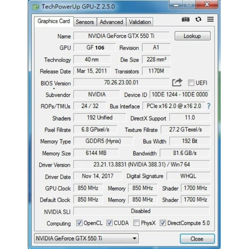 Графический процессор: GTX550Ti