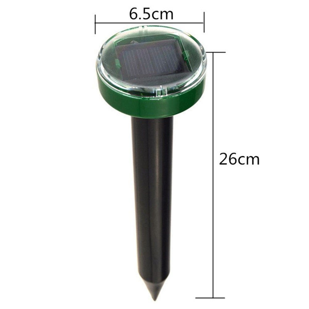 Солнечная батарея Отпугиватель грызунов отпугивает Кротов, шрот, волов и многие другие гребли Грызуны, генерируя звуковой пульс, который проникает в почву. Это prodcues a Звуковой Пульс приблизительно 400 Гц каждые 30 секунд и обеспечивает до 7500 Квадратные футы покрытия.